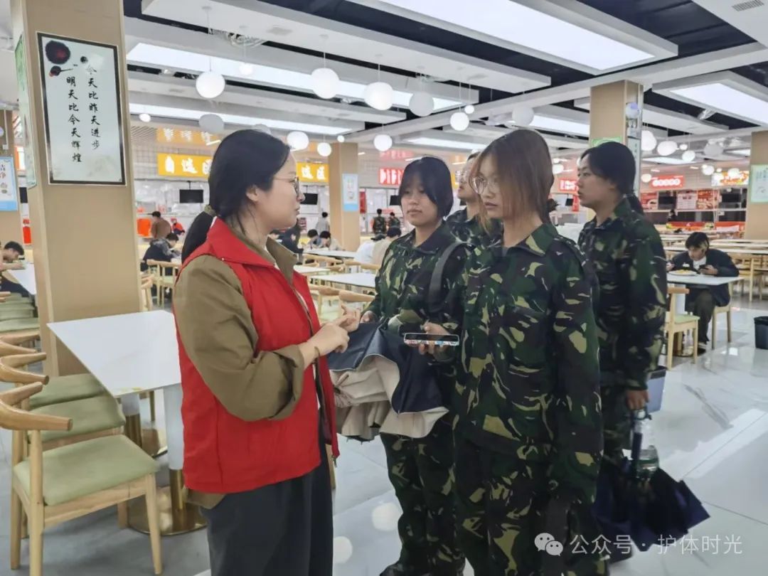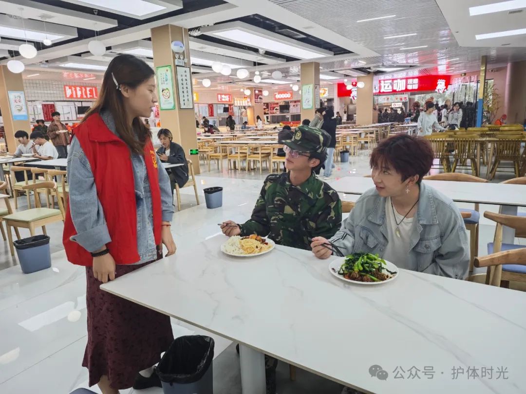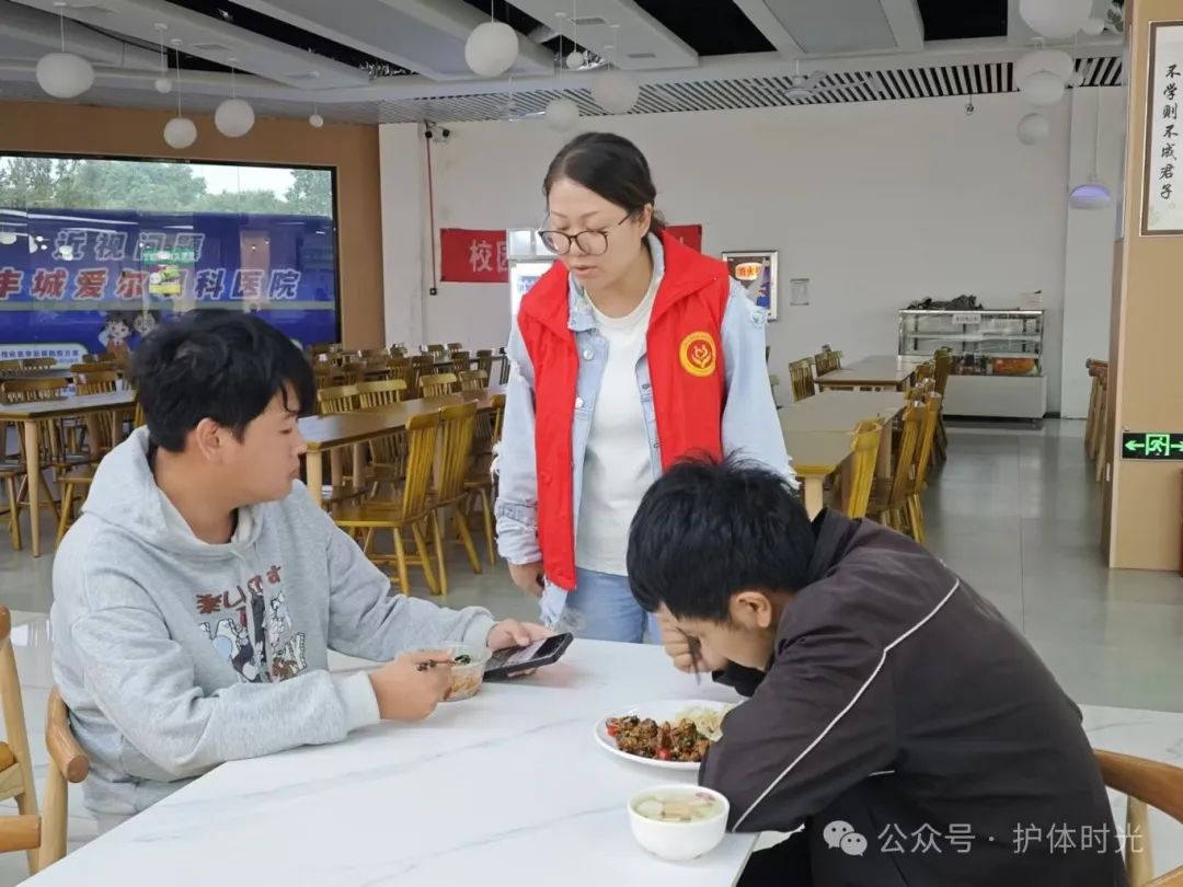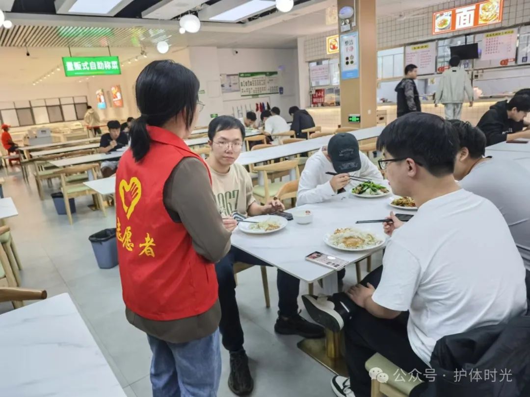 护理与健康管理学院党支部全体党员参加了此次志愿活动,由党支部书记陈欣带队走入各个食堂。
