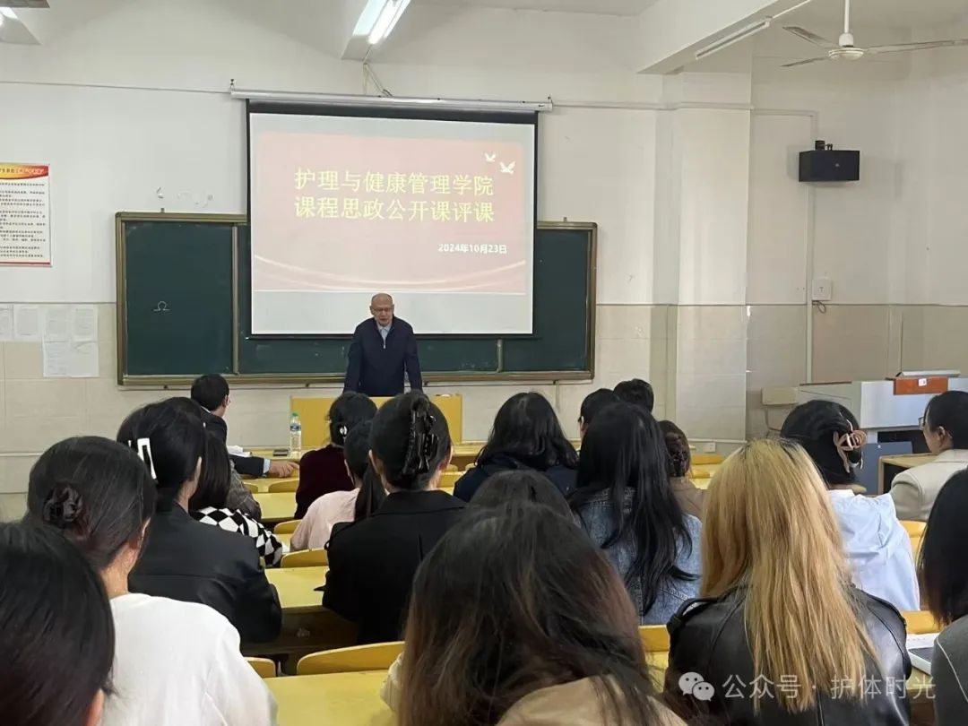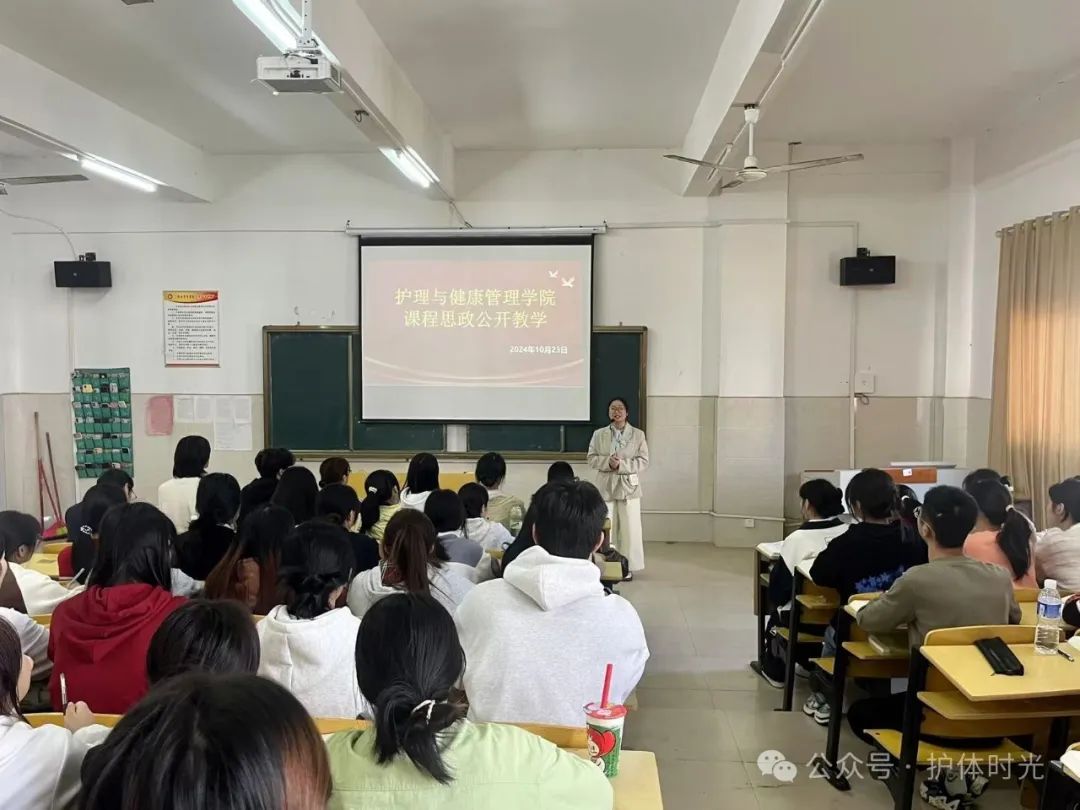 为进一步提升护理专业学生的思政素养,将思政教育融入专业课程,实现育知与育德的有机融合,10月23日下午,我院在6教301教室组织开展了课程思政公开教学活动,由基础护理教研室龚诺琳老师主讲,党委副书记熊巧玲、教务处副处长甘游亮及我院全体专职教师观摩。