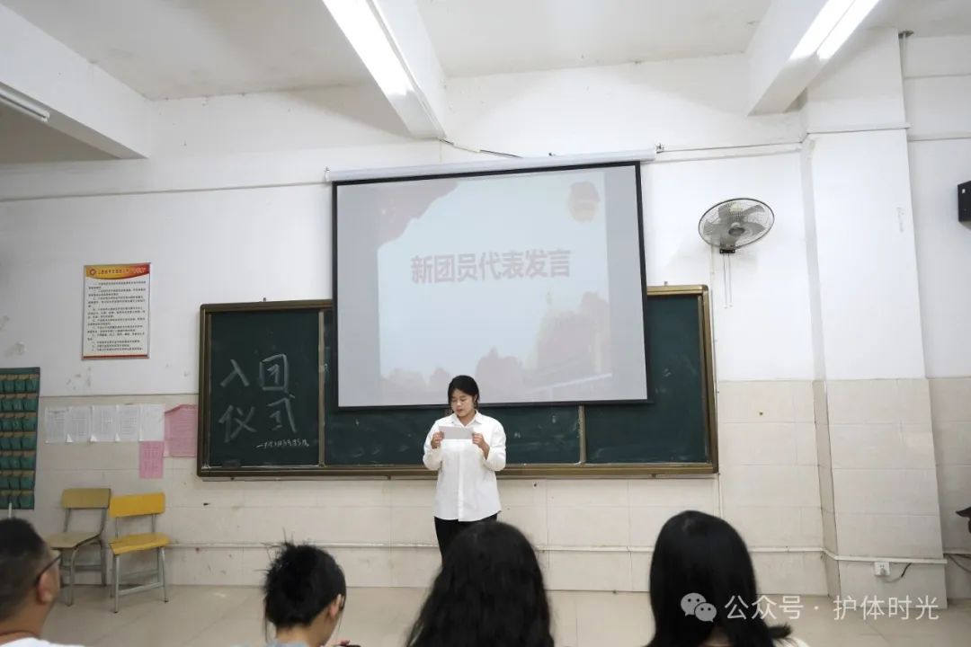 新发展团员代表刘诗雨发言,她代表全体新团员郑重承诺,将永远铭记自己所立下的誓言,继承发扬共青团的优良传统,以团员的标准严格要求自己。成为共青团员不仅是一份荣誉,更是一份责任。作为新时代的共青团员,我们将严格要求自己,在新时代广阔天地施展抱负、顽强拼搏,以饱满的热情、务实的作风投身到中国式现代化建设中去,为社会的进步和发展贡献自己的力量!
