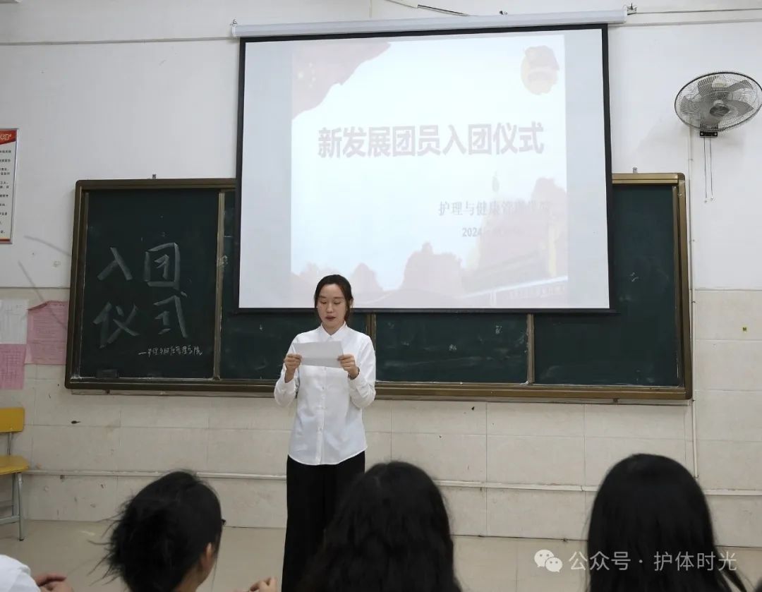 为全面贯彻习近平新时代中国特色社会主义思想,深入贯彻习近平总书记关于青年工作的重要思想,团结带领广大团员青年永远跟党走、奋进新征程。2024年11月14日晚,护理与健康管理学院在教学楼6教101组织开展了新发展团员入团仪式。出席此次活动的成员有:学院党支部书记陈欣,学院团总支书记陈思妤,全体辅导员、团支书以及新发展团员。