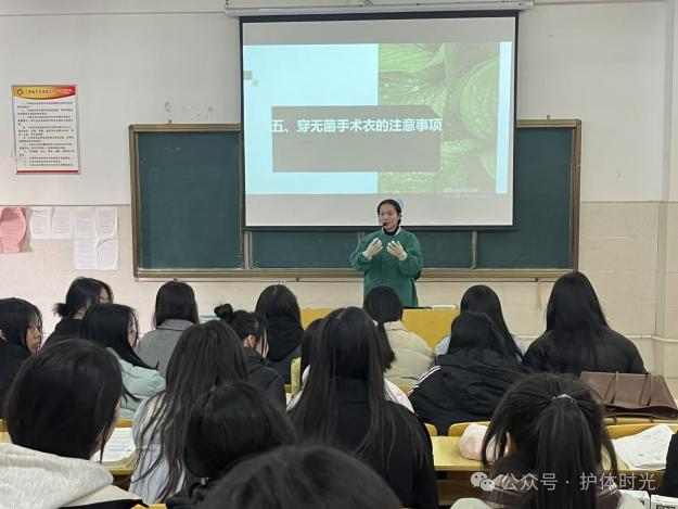 公开课授课内容为《外科护理学》(手术人员的准备),授课班级为2022级五年制护理3班,授课重点穿脱无菌手术衣的方法。