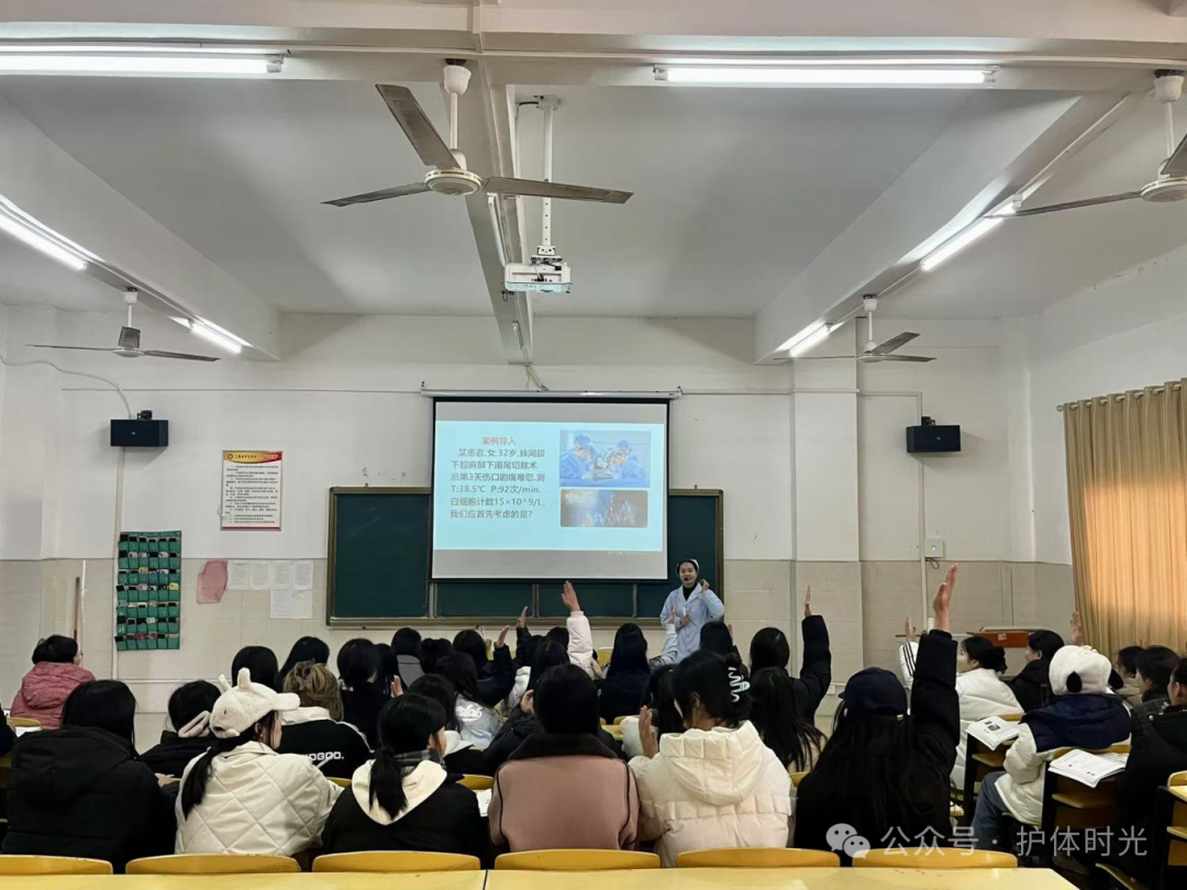 为提升青年教师教学水平,加强教学经验交流,为护理专业学生提供更优质、更专业的课堂体验,我院于12月18日下午在教学楼6教301教室开展青年教师优质课堂公开课。由甘萍老师主讲,教务副处长甘游亮及我院全体专职教师观摩。