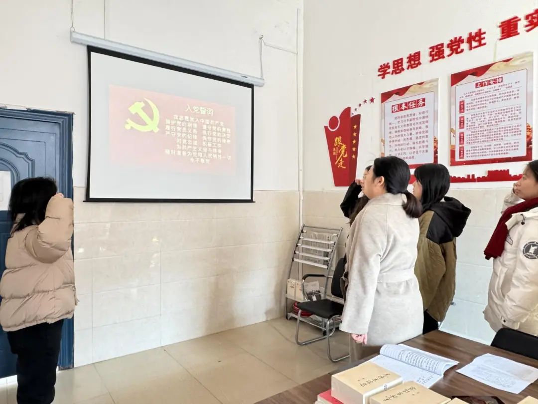 紧接着,全体党员在书记的带领下重温入党誓词。那庄严的宣誓声,在会场内回荡,仿佛将大家带回到最初入党的神圣时刻,心中的激情与信念再次被点燃。