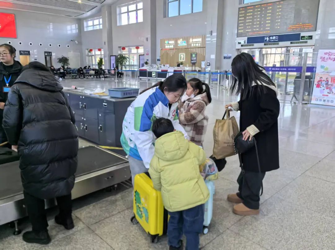 我和伙伴们主要负责为旅客提供帮扶。老弱病残孕等特殊旅客群体是我们重点关注的对象。有一次,一位腿部受伤的大叔独自出行,行动极为不便。我赶忙上前,小心翼翼地将他搀扶到轮椅上,一路推送他通过检票口,还帮他找到了座位。在这个过程中,大叔满是感激,那一声声真挚的感谢让我内心满是温暖,也更加坚定了继续做好服务的想法。