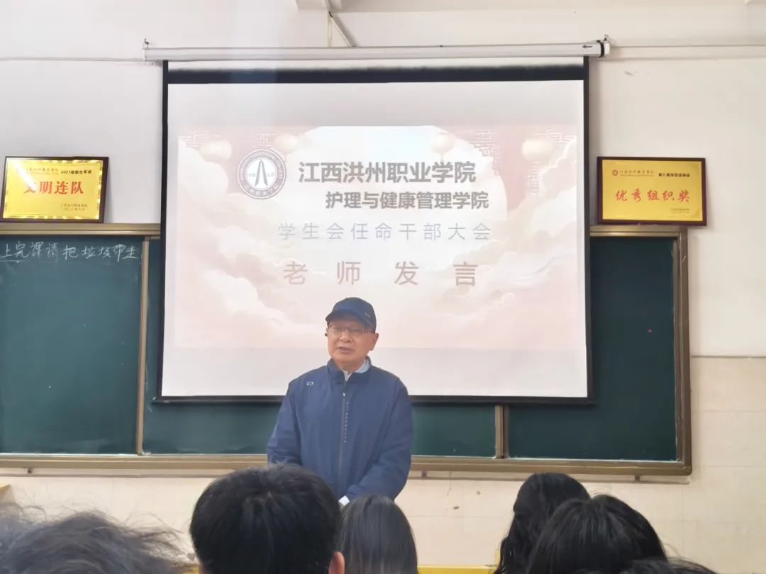 2025年3月12日,护理与健康管理学院第六届学生会任命干部大会在教学楼六栋201隆重举行。学院院长高书亮、学工办副主任陈思妤、学生会指导老师黄灿,各班辅导员以及学生会全体成员出席了本次大会。