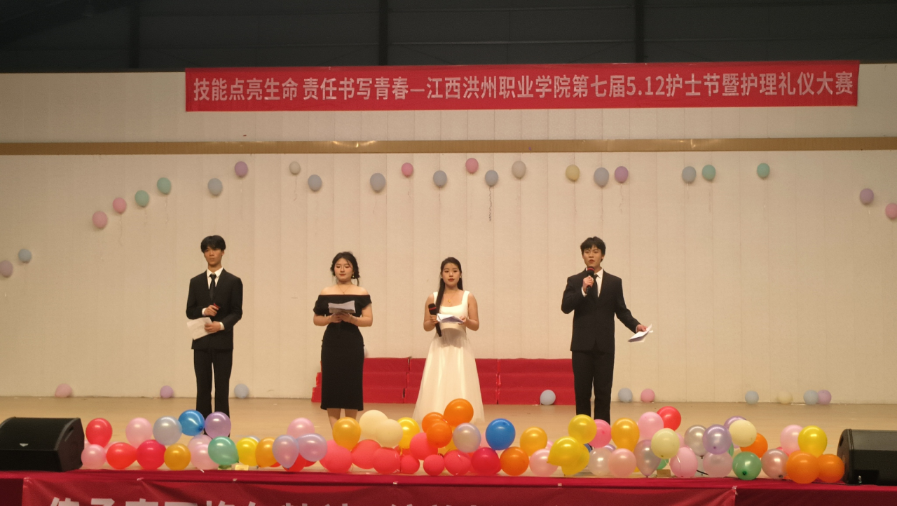 为弘扬南丁格尔精神,展现新时代护理学子的职业风采,在第113个国际护士节来临之际,我院于5月8日晚6点在学校体育馆隆重举办江西洪州职业学院第七届5.12护士节暨护理礼仪大赛,到场的评委老师们有:吕婷,黄璐,丁小娣,张艳平,周巧玲。