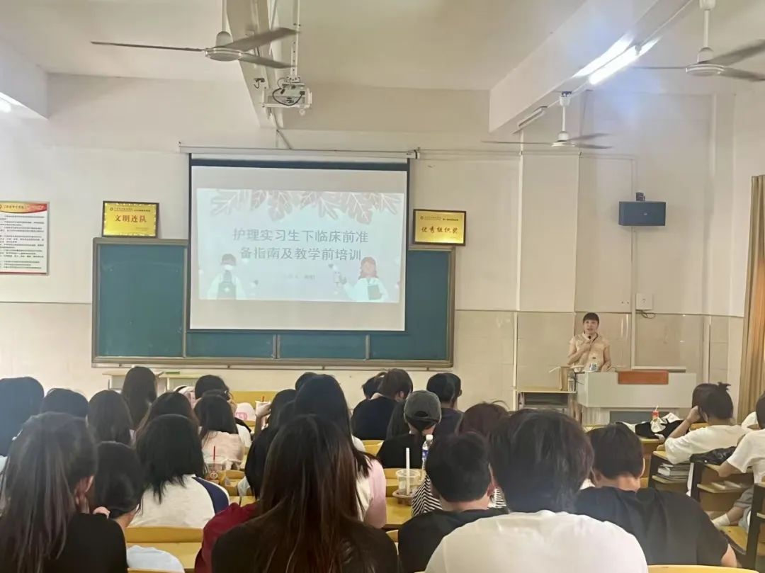 为帮助护理学生提前了解护理临床工作,6月18日下午,我院在教学楼6教101教室举办“护理实习生下临床前准备指南及教学前培训”专题讲座,由丰城市中医院护理部主任、梅娟主讲,2024级高职护理学生听讲。