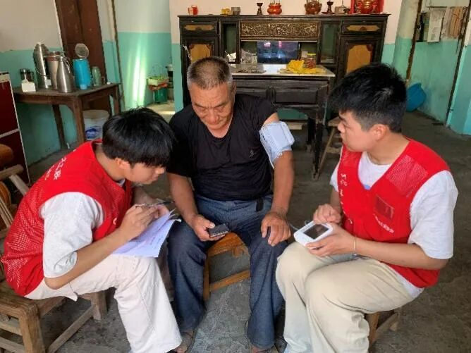 在老人家中,他们熟练地为他们测量血压、监测心率,用专业的口吻耐心讲解着日常的健康注意事项。一句句关切的询问,一次次耐心的倾听,一个个专业的建议,他们希望能用所学之长,为老人们的健康筑起一道小小的屏障。