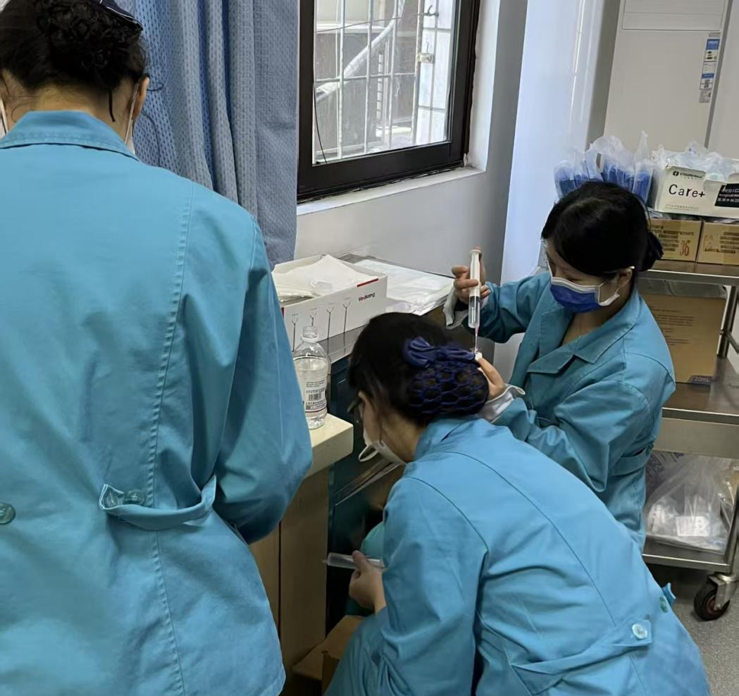 图中,是我和抢救室的老师们围在护理推车旁,认真研讨患者的护理情况。大家不仅专注于病情和护理操作本身,还常常会特意提到要多关注患者的感受,比如思考怎样的操作能让患者更舒适。每一次这样的研讨,都饱含着对患者的关怀。我也从中学到了很多,更加明白护理工作不仅需要专业技能,更要充满温情。
