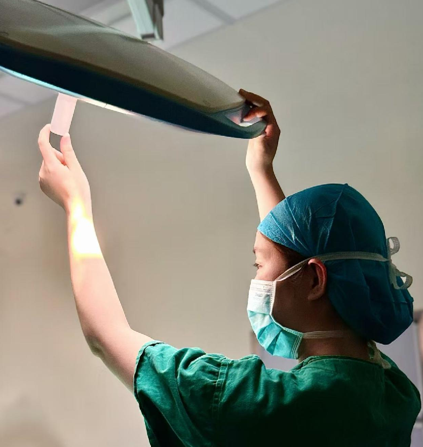 在无影灯下,我们是生命的追光者。一身绿衣,一顶蓝帽,口罩遮住了容颜,却遮不住眼中的专注与温柔。双手托起的不仅是手术灯,更是对生命的敬畏与守护,这一刻,我们将专业与热忱熔铸在方寸手术间,成为人间最动人的“医”瞬间,照亮了患者生的希望,也镌刻下医者仁心的璀璨模样。