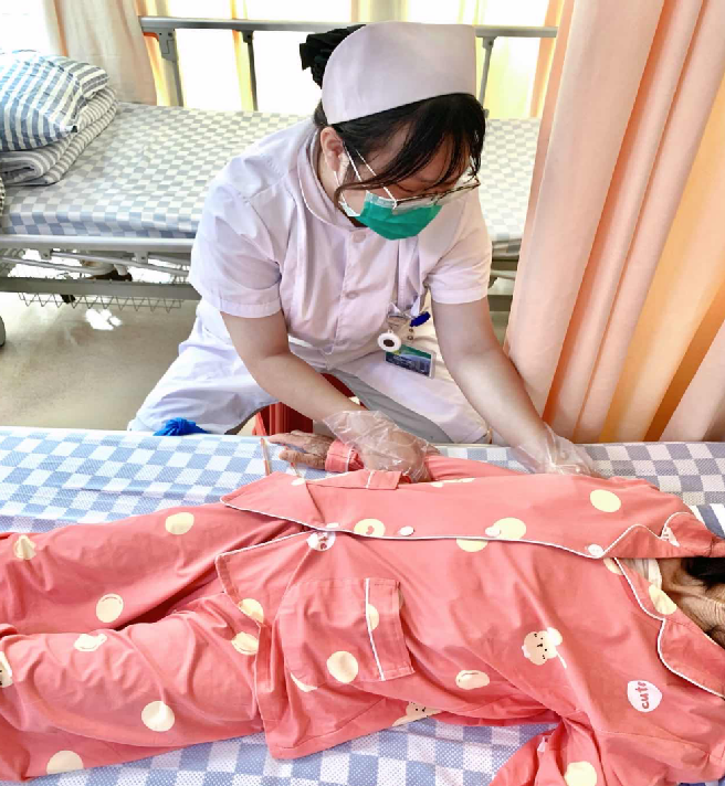 在康复科患有意识障碍的的李爷爷,是一位气管切开病人,痰液粘稠不易咳出,每天需做2次体位排痰,10分钟的体位排痰对于医护人员来说无比艰辛,手臂、腰背累计的酸胀感与老人家的呼吸艰难相比时,便轻若尘埃。每坚守的这10分钟,是他通往顺畅呼吸的生命通道。
