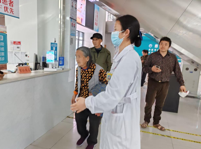 现代化医疗设备,对老人而言如同“数字迷宫”。那天,见一位满头银丝的奶奶因没有手机在自助缴费机前一脸茫然,我连忙搀扶她到人工缴费处办理,并讲解拿药的位置。我深知,我们的搀扶与讲解,是老人最踏实的就医依靠。