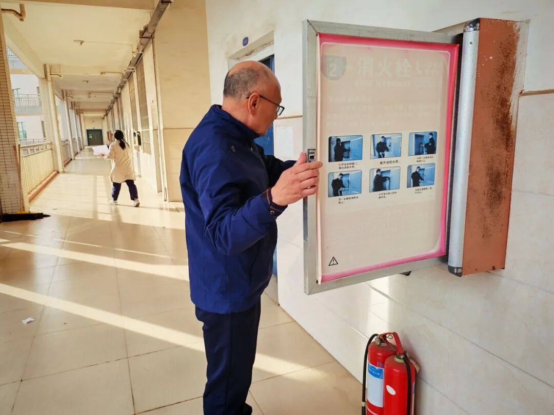 高院长率队检查教学楼,细致排查教学设备用电安全、电源线路布置、消防设施配置等,不放过任何一处安全盲区。