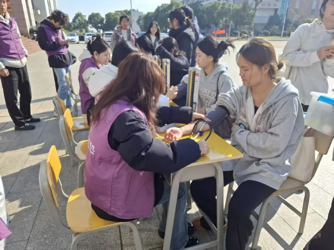 为将课堂知识转化为实践力量,11月20日上午9:00-12:00,学院团支部、院学生会联合组织“血压知多少,健康早知道”公益量血压活动,在江西洪州职业学院图书馆门口与二食堂门口暖心开展,为校内师生送上专业、贴心的健康服务。