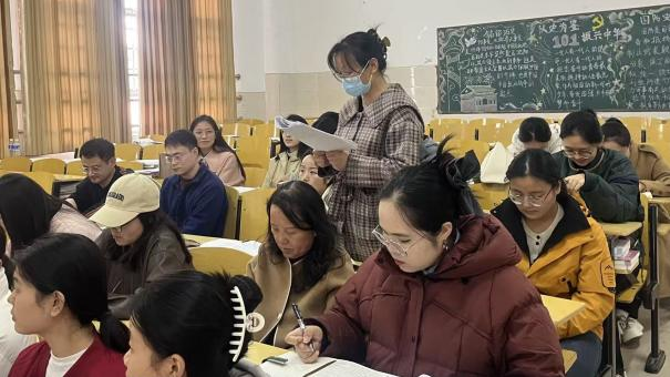为助力青年教师成长,锤炼教学本领,构建优质课堂,12月3日下午2点,我院在教学楼6栋101教室开展青年教师优质课堂公开课,由青年教师熊琪主讲。纪委书记熊巧玲、教务处副处长甘游亮、教务处邱永进及我院全体教师观摩。