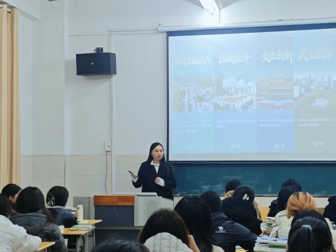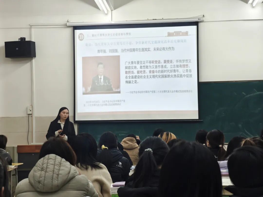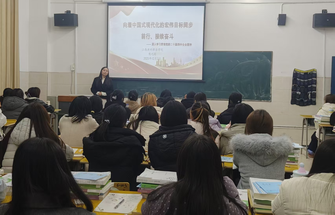 为深入学习贯彻习近平总书记关于学校思政课建设的重要指示精神,12月3日晚 ,纪委书记熊巧玲深入护理与健康管理学院,为2025级康复治疗技术1班讲授了一场以“向着中国式现代化的宏伟目标阔步前行、接续奋斗”为主题的思政课。本次思政课聚焦党的二十届四中全会精神。