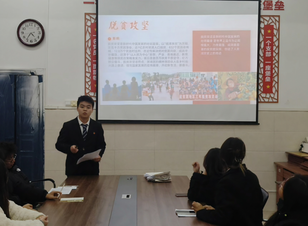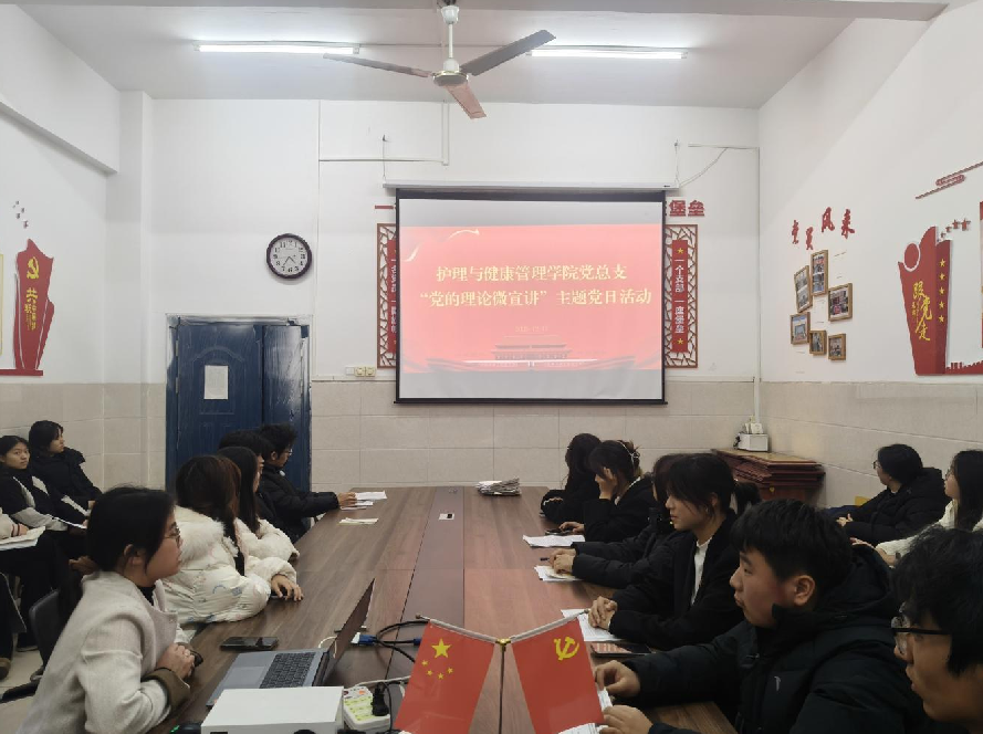 为深化入党积极分子对党的创新理论的理解与认同,激发其学习热情与实践自觉,12月17日晚,护理与健康管理学院学生党支部在党员活动室举办了“党的理论微宣讲”主题党日活动。六位来自不同专业的入党积极分子登台宣讲,用青年视角、青春语言讲述党的理论,分享学习感悟。学院党总支书记陈欣出席活动。