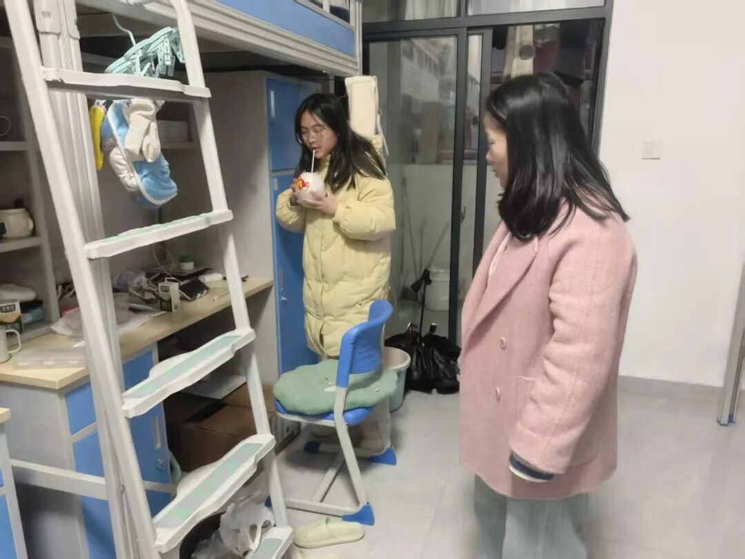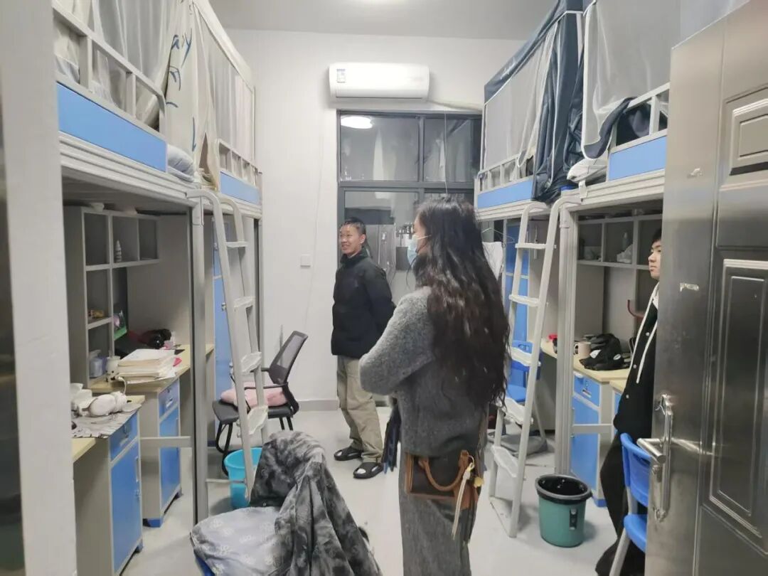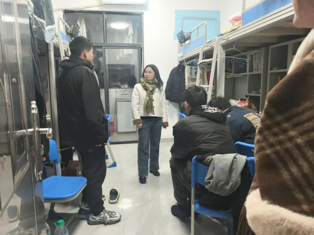 当晚,学院书记陈欣带队,组织全体辅导员及学生干部,分组对全院在校学生宿舍展开拉网式安全隐患排查。检查队伍深入每一间寝室,重点围绕违规使用电器、插线板上床、私自拆除限位器等常见安全隐患进行细致检查。过程中,老师们不仅认真记录存在的问题,还现场开展安全教育,耐心讲解宿舍安全规定,引导学生增强安全意识,自觉遵守住宿管理规定。