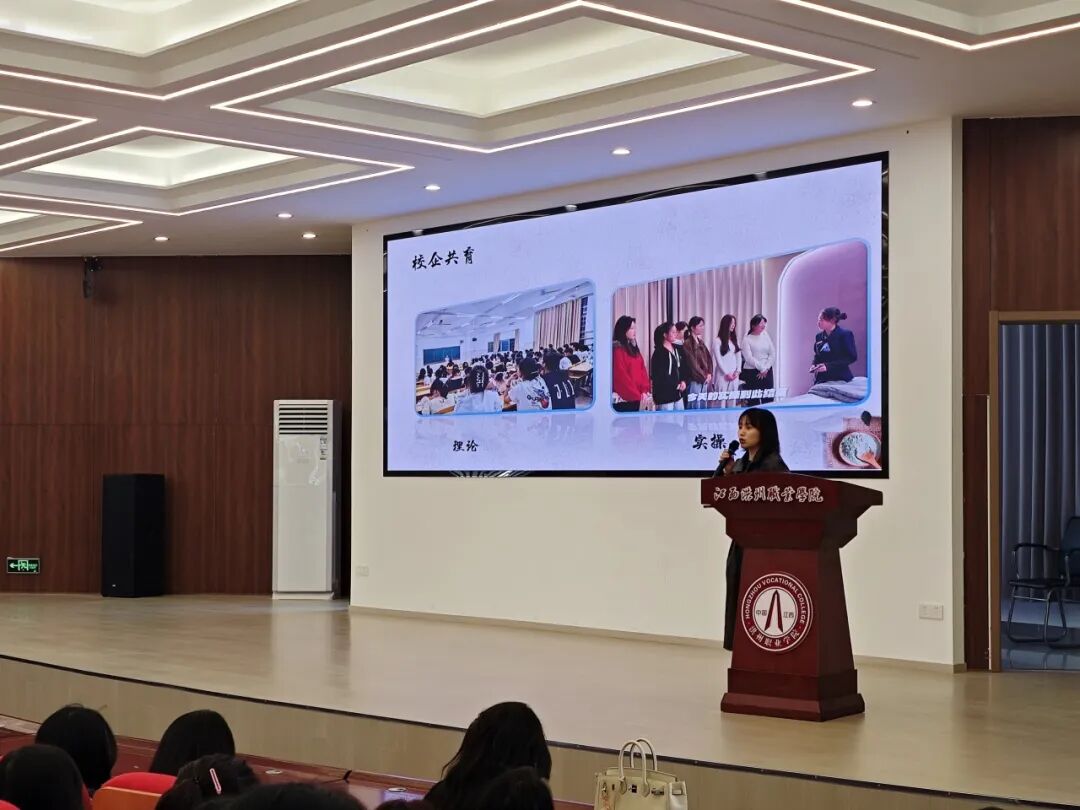 在企业宣讲环节,丰城繁花美容院及电商企业代表依次登台,通过PPT展示、个人经历分享等形式,向在场同学全方位介绍了企业的发展历程、核心业务、企业文化及经营理念。企业代表详细展示了企业环境优势,包括专业化的工作场地、完善的配套设施及人性化的管理模式。同时,针对同学们最为关心的就业问题,企业代表逐一解读了招聘岗位要求、薪酬福利体系、职业晋升通道等核心信息,让同学们对企业就业优势有了清晰认知。