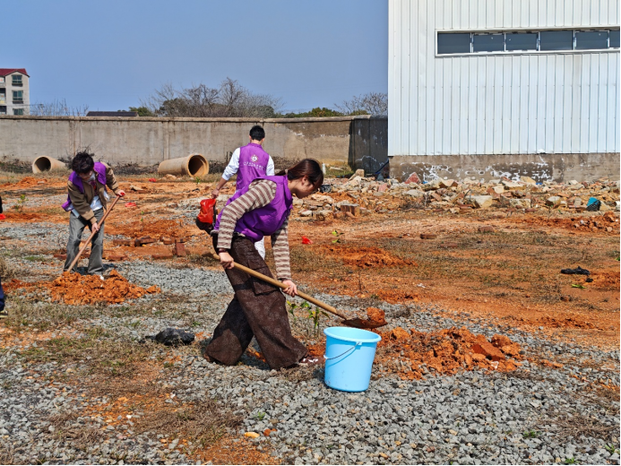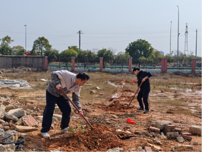 铁锹起落、汗水挥洒,泥土的芬芳与青春的朝气交织在一起。同学们干劲十足,脸上洋溢着劳动的喜悦,用双手种下希望,以行动守护生态。一株株新苗迎风挺立,错落有致,为校园添上了盎然生机,也承载着师生对绿色校园、美丽中国的美好期盼。