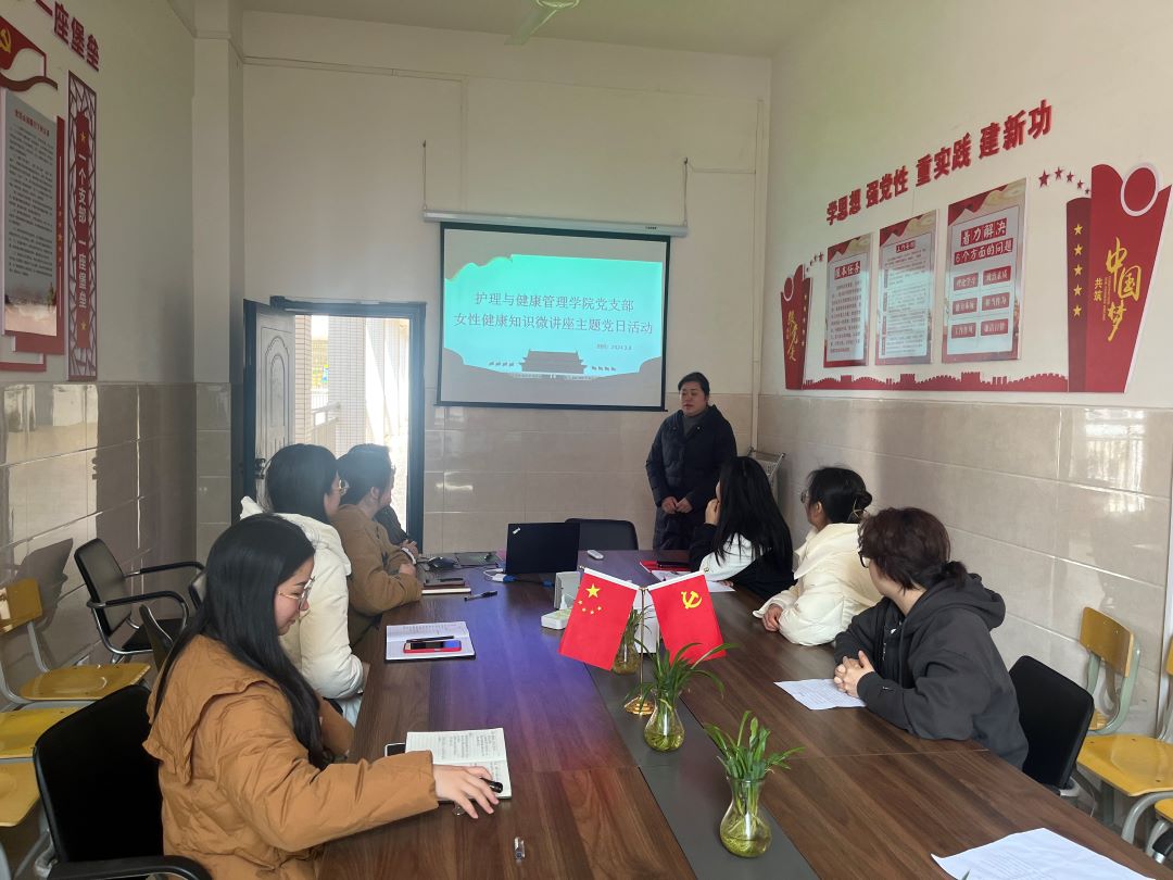 为庆祝三八妇女节,关爱女性健康,提高女性自我保健意识,护理与健康管理学院党支部在3月8日举办了一场“关爱女性,健康同行”的女性健康知识讲座,由临床护理教研室妇产科护理学课程教师张艳平主讲,支部全体党员参与。