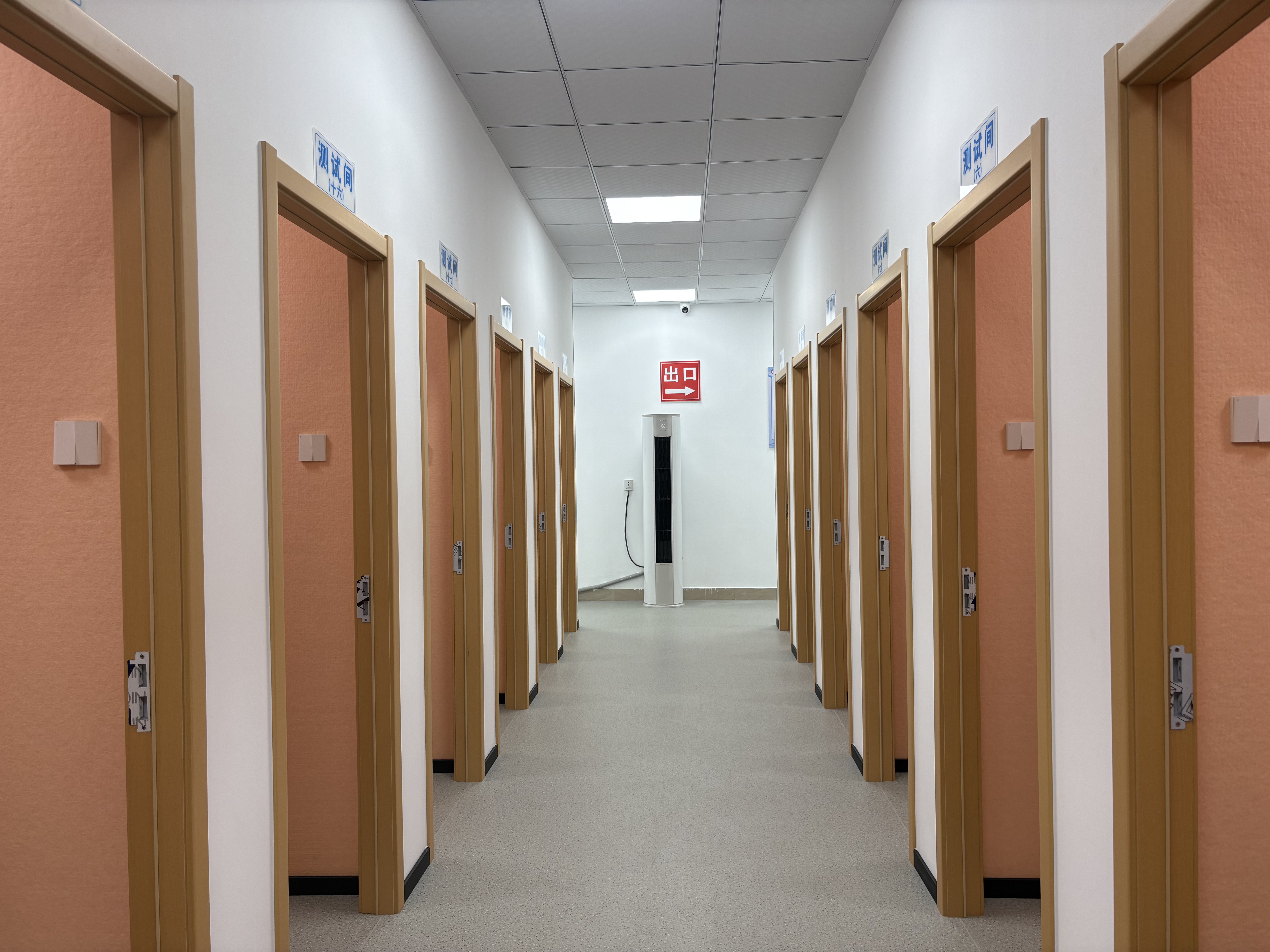 测试站于2025年7月启动建设,8月完成基础设施与硬件安装。站点位于学校物华楼二楼,总面积约370平方米,划分为考试区和候测区两大功能区域。考试区内设置信息采集区与封闭式考试区,配备20个独立隔音测试间。每个测试间面积均不低于2.2平方米,并配备专业隔音设施、高清监控、专用考试电脑及高品质耳麦,全面保障测试过程的独立性、安静性与公平性。候测区可同时容纳60人以上,充分满足考生候考需求,确保各环节衔接顺畅。