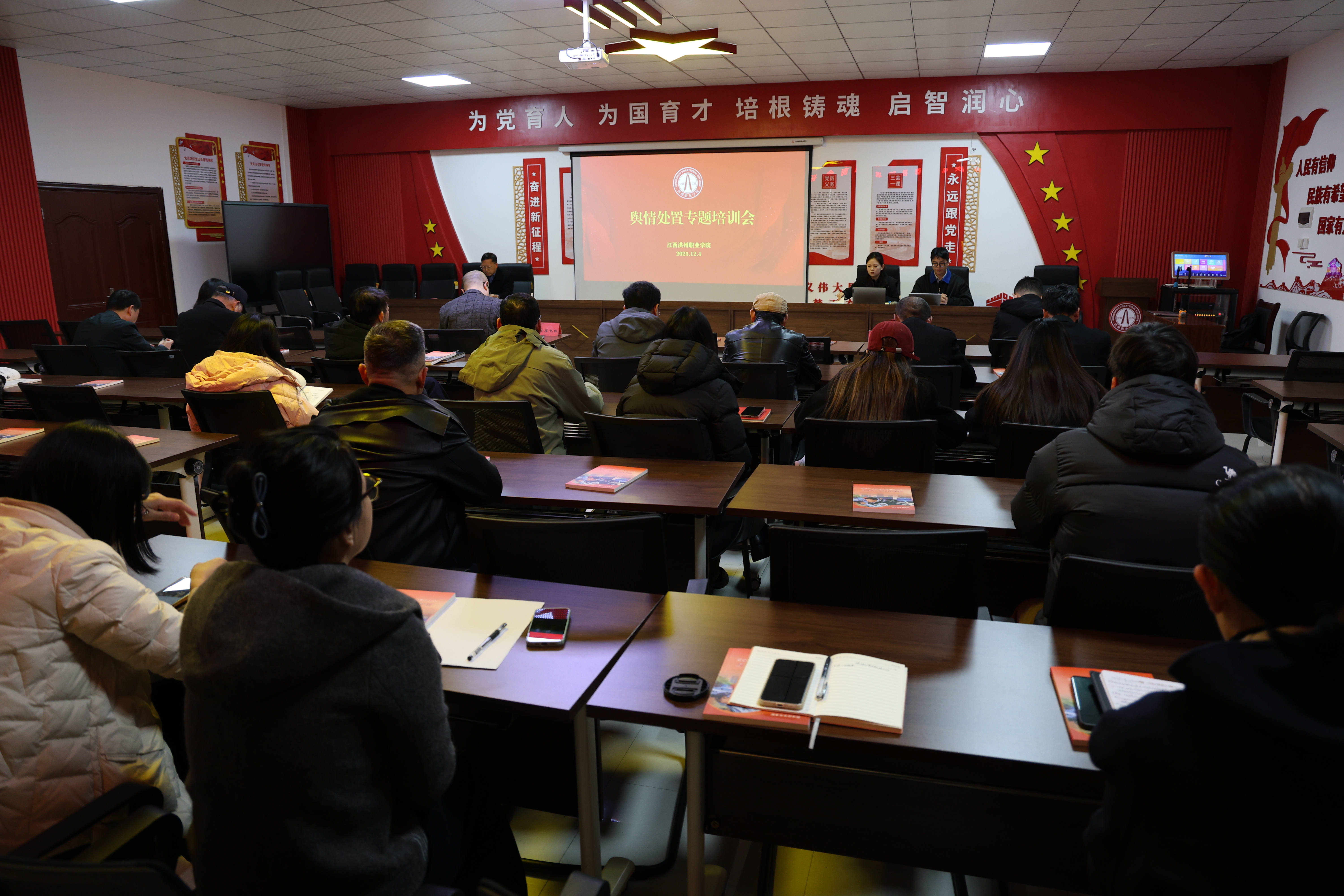 为深入贯彻落实党的二十届四中全会精神,有效应对网络信息技术快速发展背景下意识形态工作的新挑战,进一步提升学校网络舆情应急处置效能与网络舆论引导水平,强化突发事件应对能力,12月4日下午,学校党委宣传部牵头组织开展舆情应急处置专题培训活动。纪委书记熊巧玲,校长助理黎洵出席活动。各部门负责人、各学院院长、党总支书记(副书记),宣传部全体工作人员参加培训。