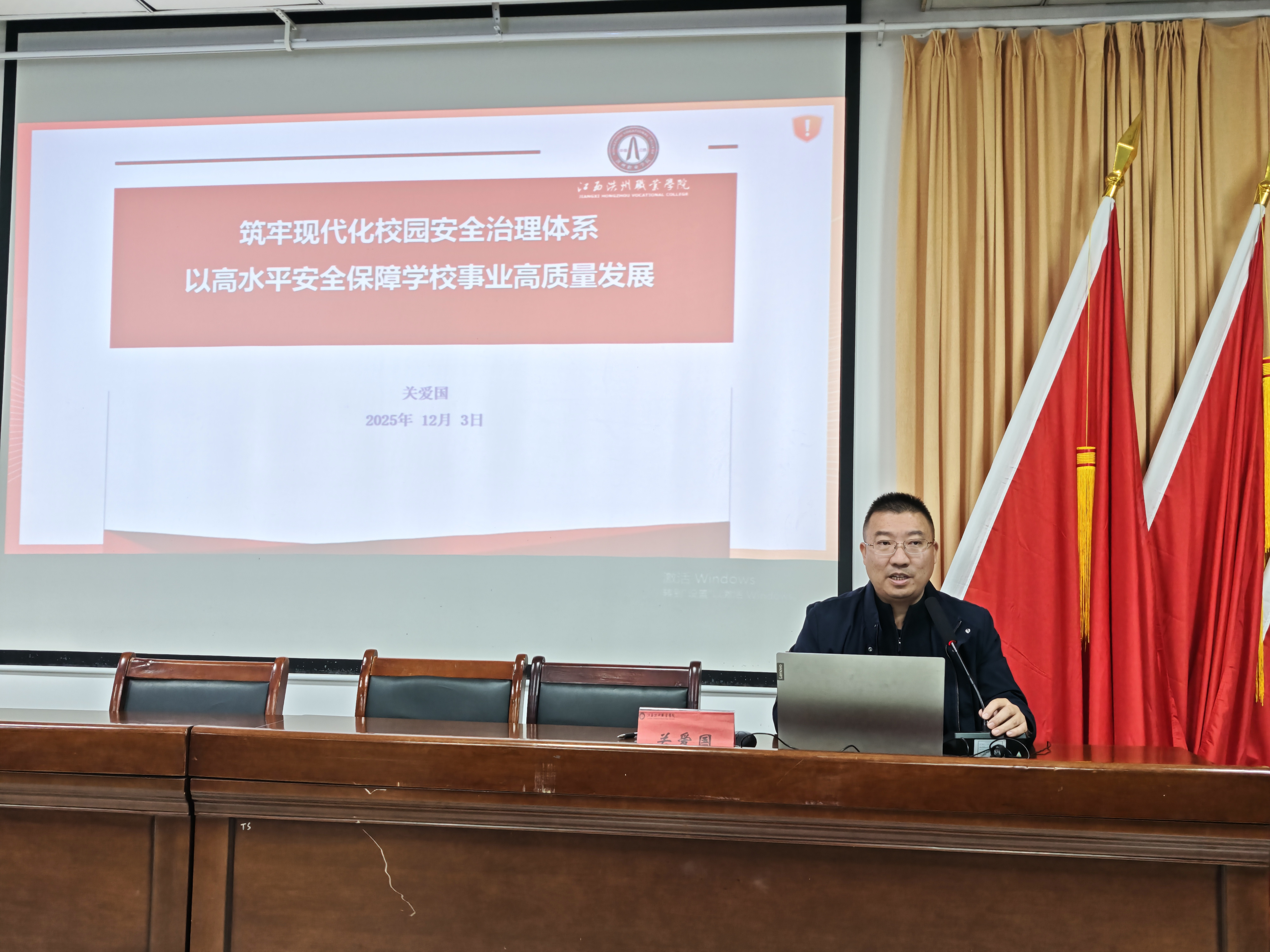 12月3日,副校长关爱国走进智能制造产业学院,以“筑牢现代化校园安全治理体系,以高水平安全保障学校事业高质量发展”为主题,为智能制造产业学院师生代表讲授了一堂主题鲜明、内容扎实的思政公开课。