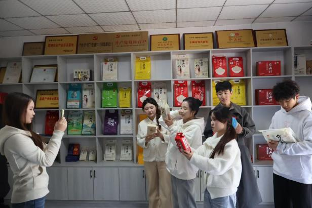 立足特色资源,探寻农业兴旺之基。实践教学首站,师生们来到位于董家镇介山农业科技有限公司产品展览区。展区内,富硒大米、花生、茶油等琳琅满目的富硒农产品整齐陈列,全方位展现了硒元素赋能农产品的丰硕成果。在负责人的讲解下,师生们深入了解硒元素的营养价值与产业价值。从一粒米到一桌菜,从田间种植到品牌打造,大家真切看到特色资源转化为发展优势的生动实践,深刻领悟到“产业兴旺是乡村振兴的重中之重”的深刻内涵,明白唯有立足本土资源、深耕特色产业,才能筑牢乡村发展的经济根基。