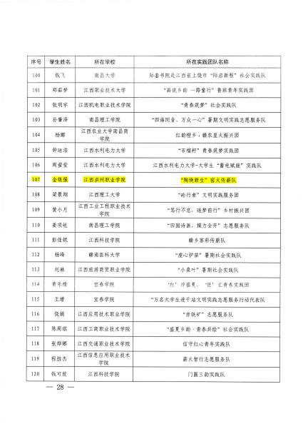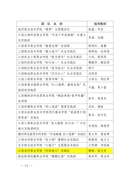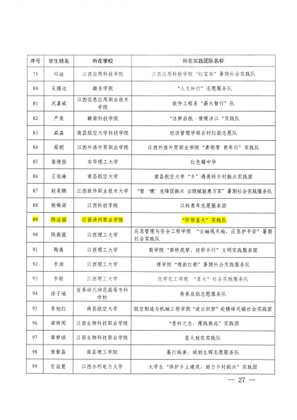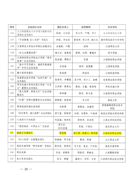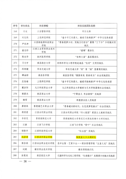 3、“优秀个人”称号:“阡陌星火”实践队陈运祺、“陶焕新生”窑火传薪队金银强、铜鼓星火乡兴调研队冯彦淳