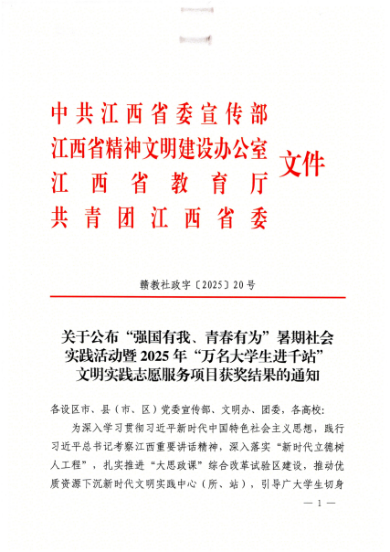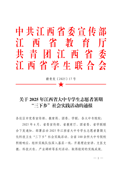 一、2025年江西省大中专学生志愿者暑期“三下乡”社会实践