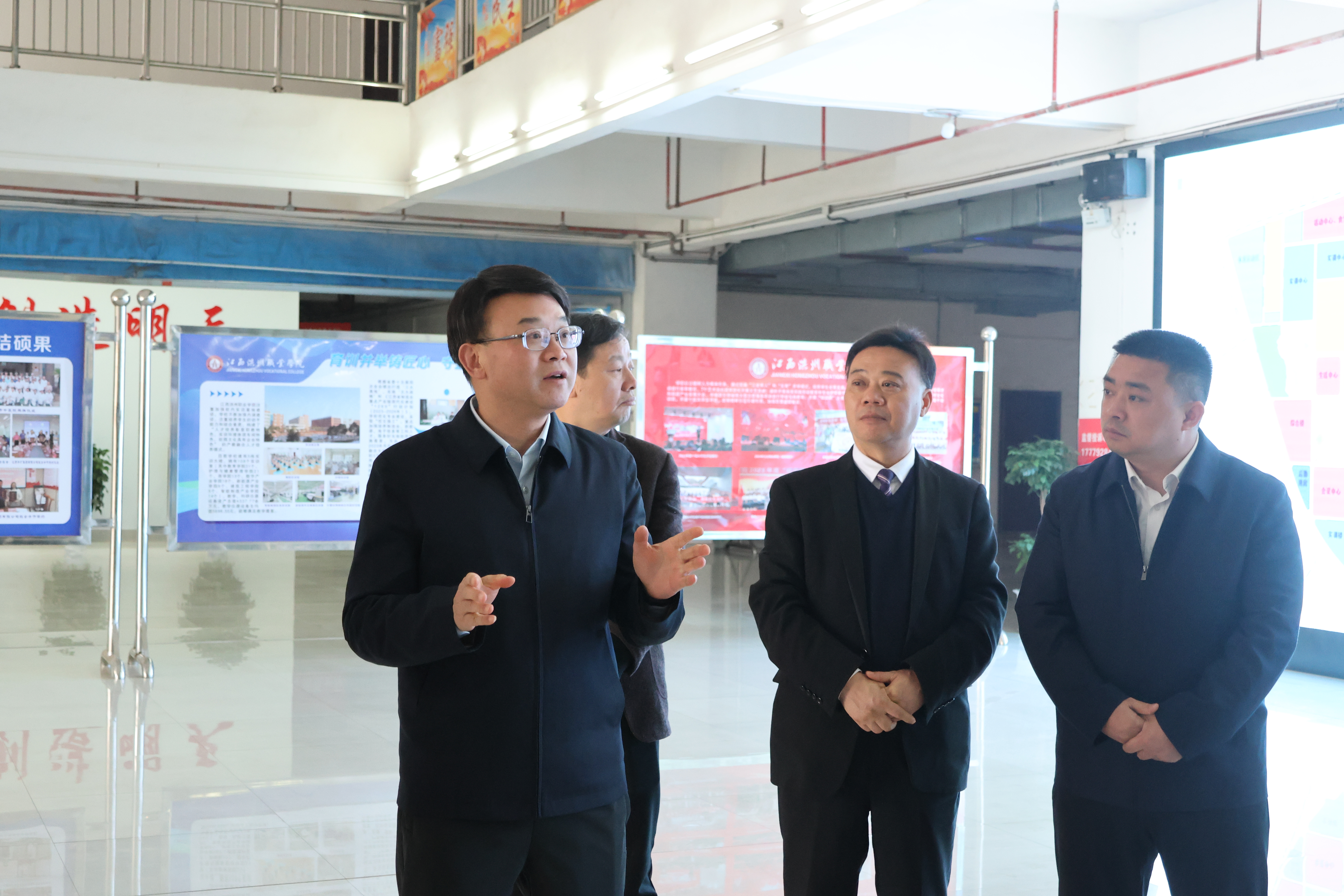 1月30日下午,江西省人民政府副省长、农工党江西省委会主委、省中华职业教育社主任史可一行莅临江西洪州职业学院调研指导。宜春市委副书记石军英,省政协副秘书长、民建省委会专职副主委、省职教社副主任陈朝清,丰城市委书记徐结强等领导陪同调研。学校理事长陈建兵,校长陈万龙等校领导现场迎接。