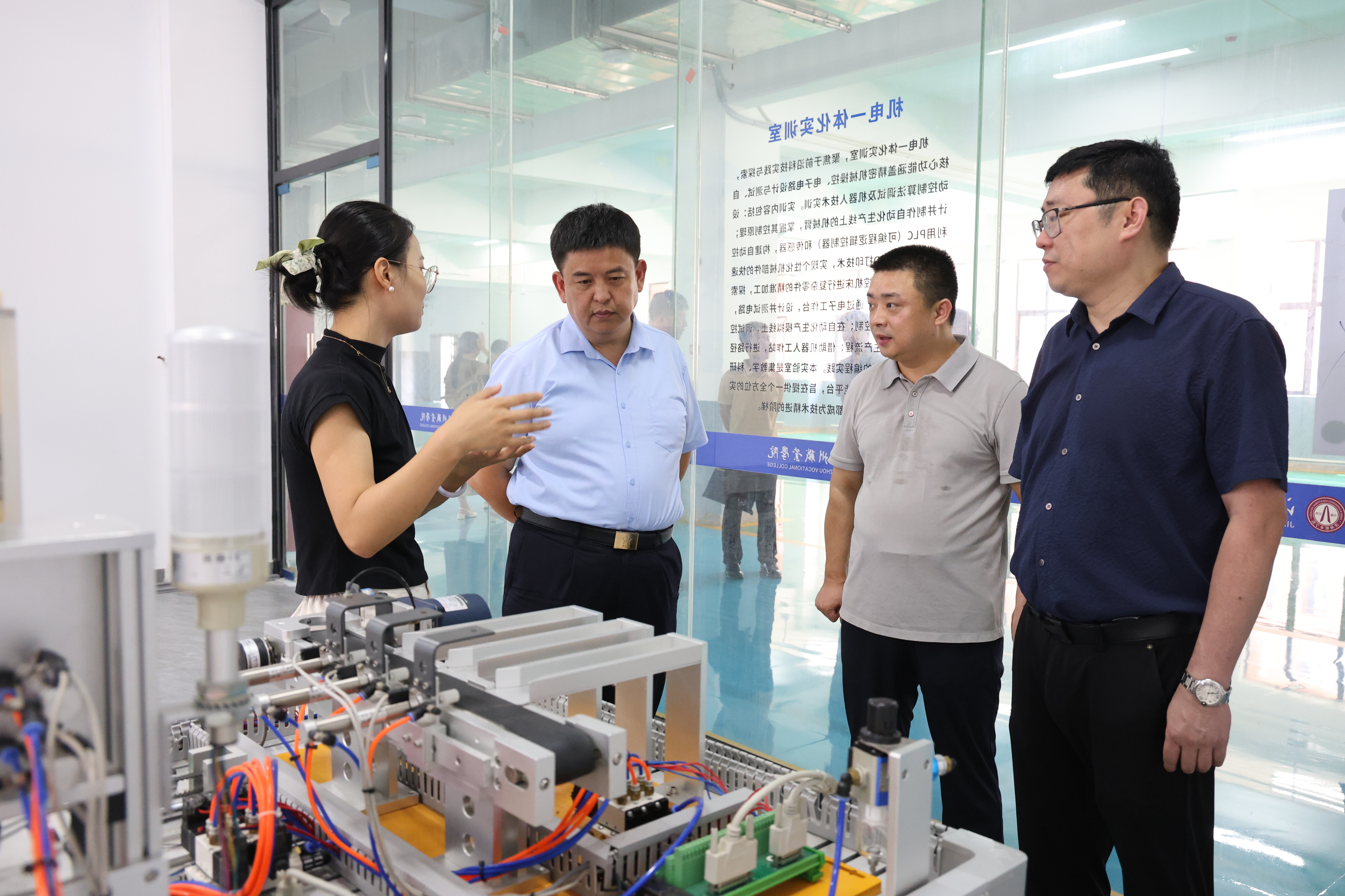 调研伊始,季强一行分别前往电子商务、新能源汽车以及机电一体化实训室参观,详细了解学校实训室的功能定位、课程开设等方面情况。