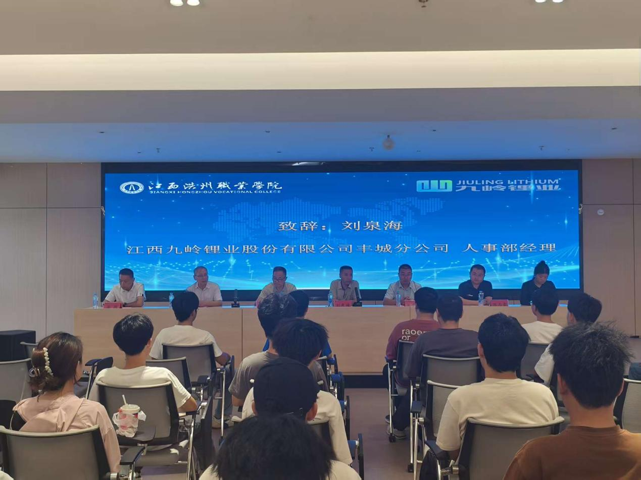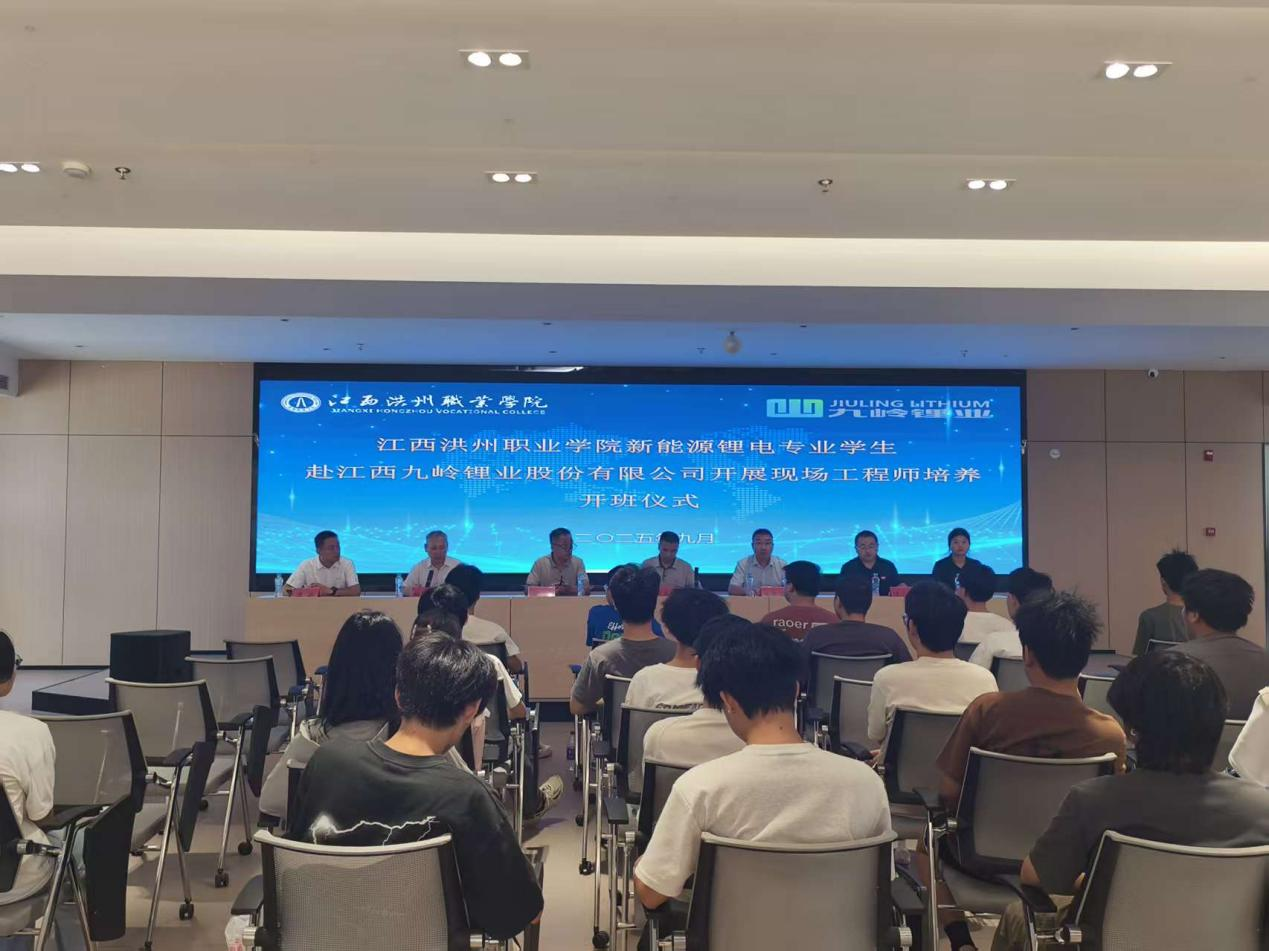 学校副校长关爱国、新能源产业学院院长徐昭,江西九岭锂业股份有限公司丰城分公司人事部经理刘泉海、生产部副经理陈志豪、安环部经理潘颖等校企双方代表以及新能源锂电专业现场工程师班30名学生参加开班仪式。仪式由学校新能源产业学院党总支副书记韩春萌主持。