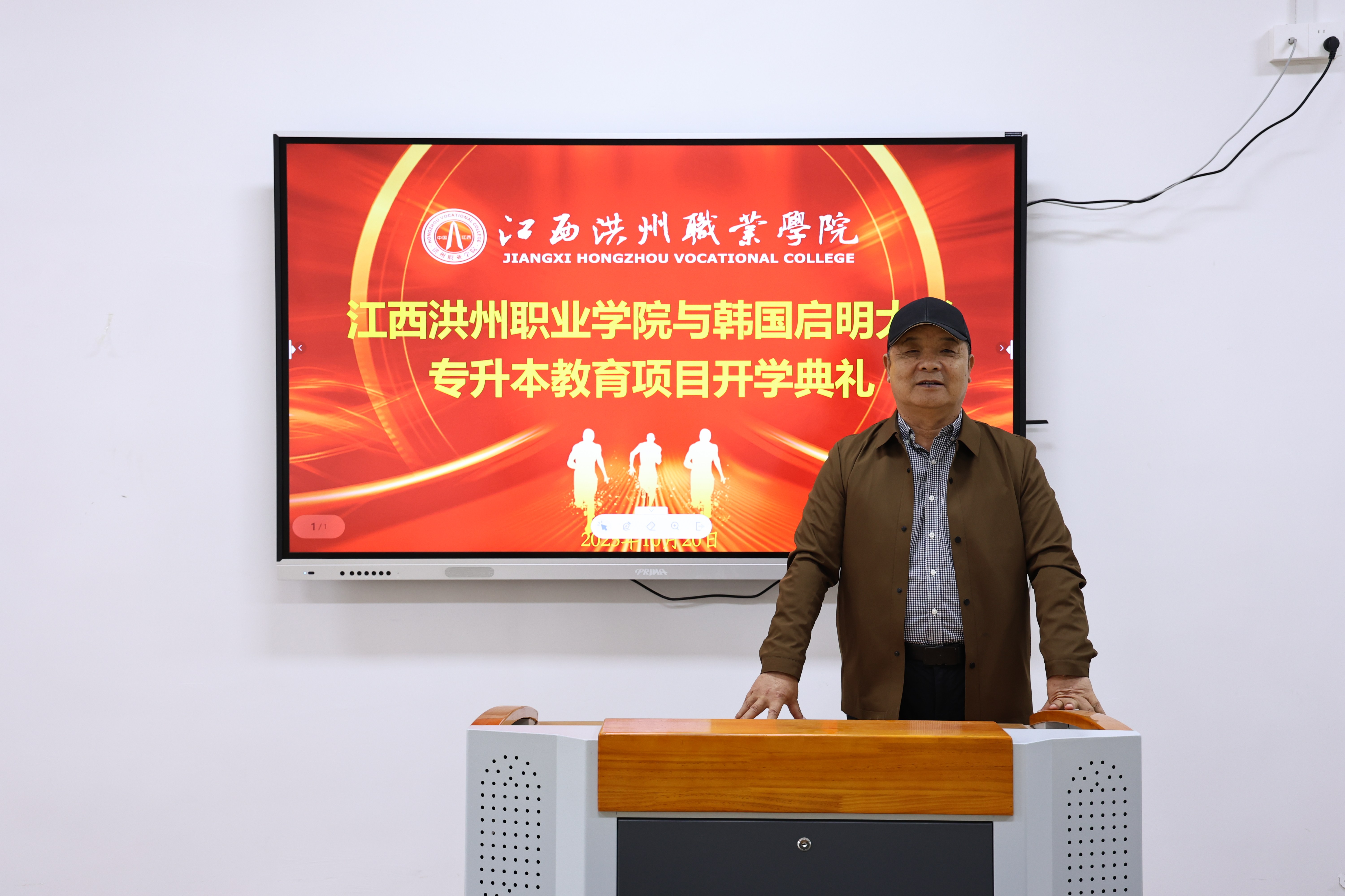 江西洪州职业学院国际交流中心主任吴杰首先致辞,对韩方代表教师表示热烈欢迎,向入选项目的同学们致以诚挚祝贺。他指出,此次与韩国启明大学的合作是学校推进国际化办学战略的重要举措,专升本教育项目整合了双方优质教育资源,将通过“国内筑基+海外提升”的培养模式,为学生搭建通往国际舞台的桥梁,助力同学们成长为具有跨文化素养的复合型人才。同时,他勉励同学们珍惜难得的学习机会,扎实掌握专业知识与韩语技能,以开放包容的心态拥抱多元文化。
