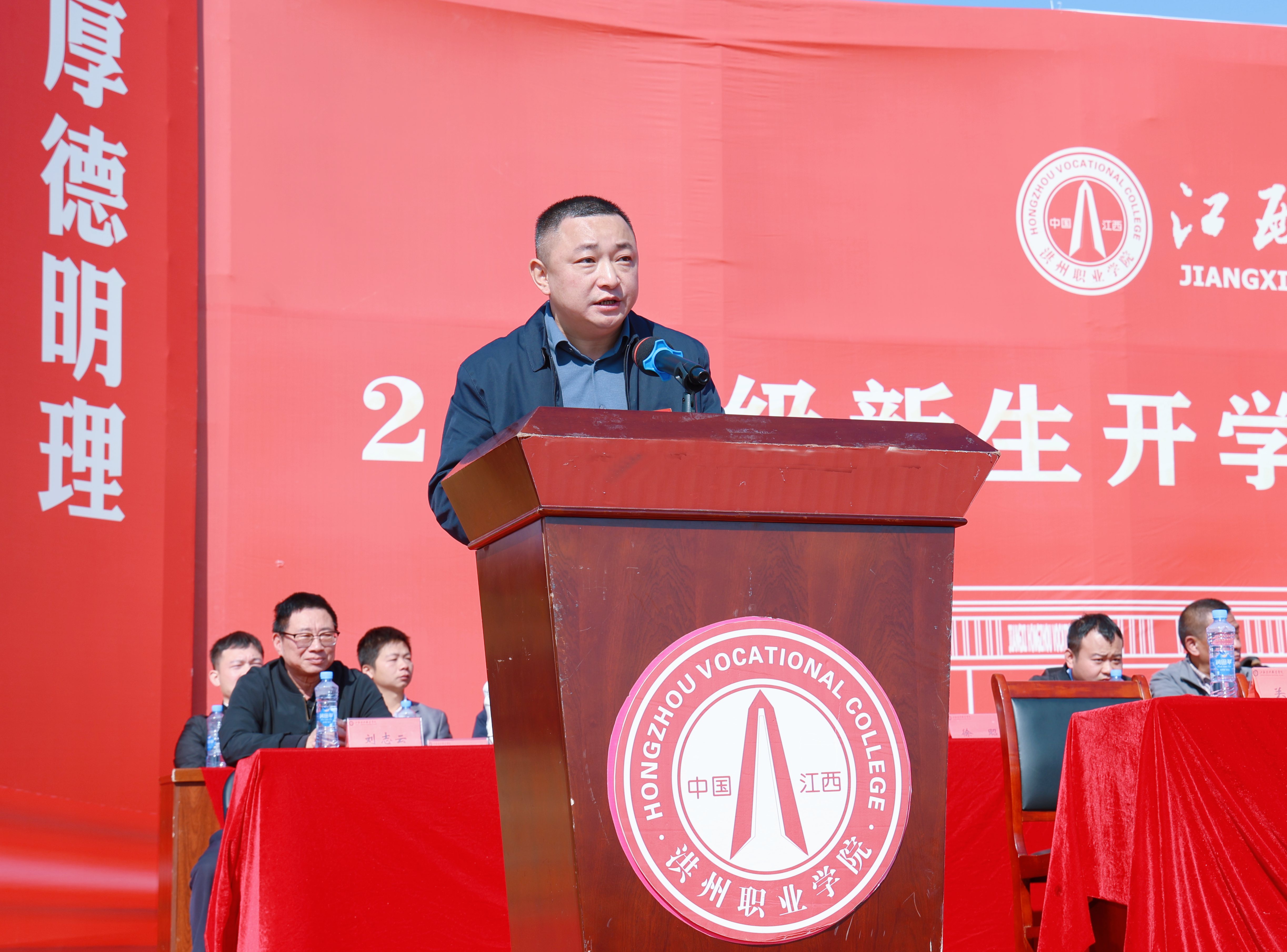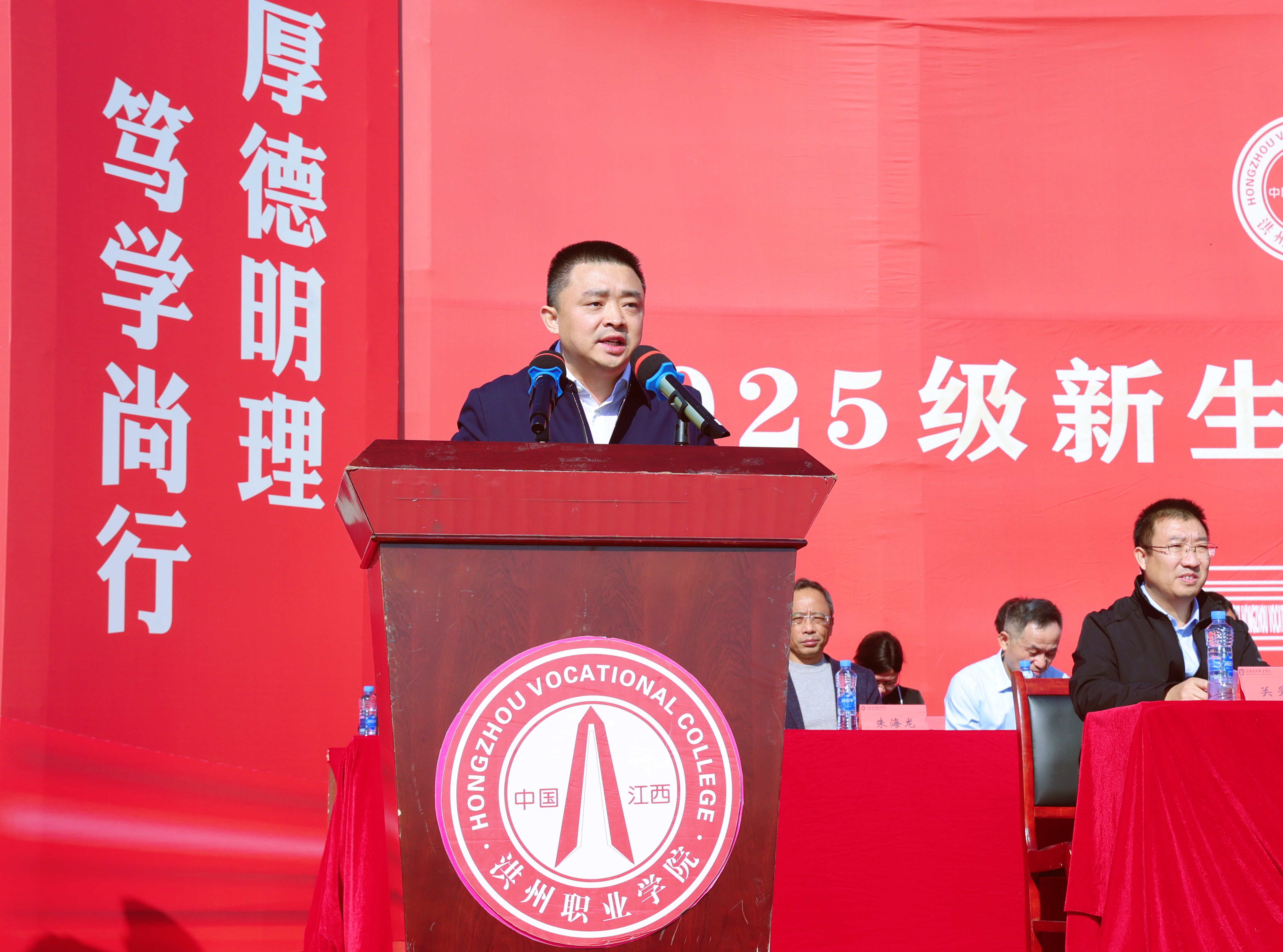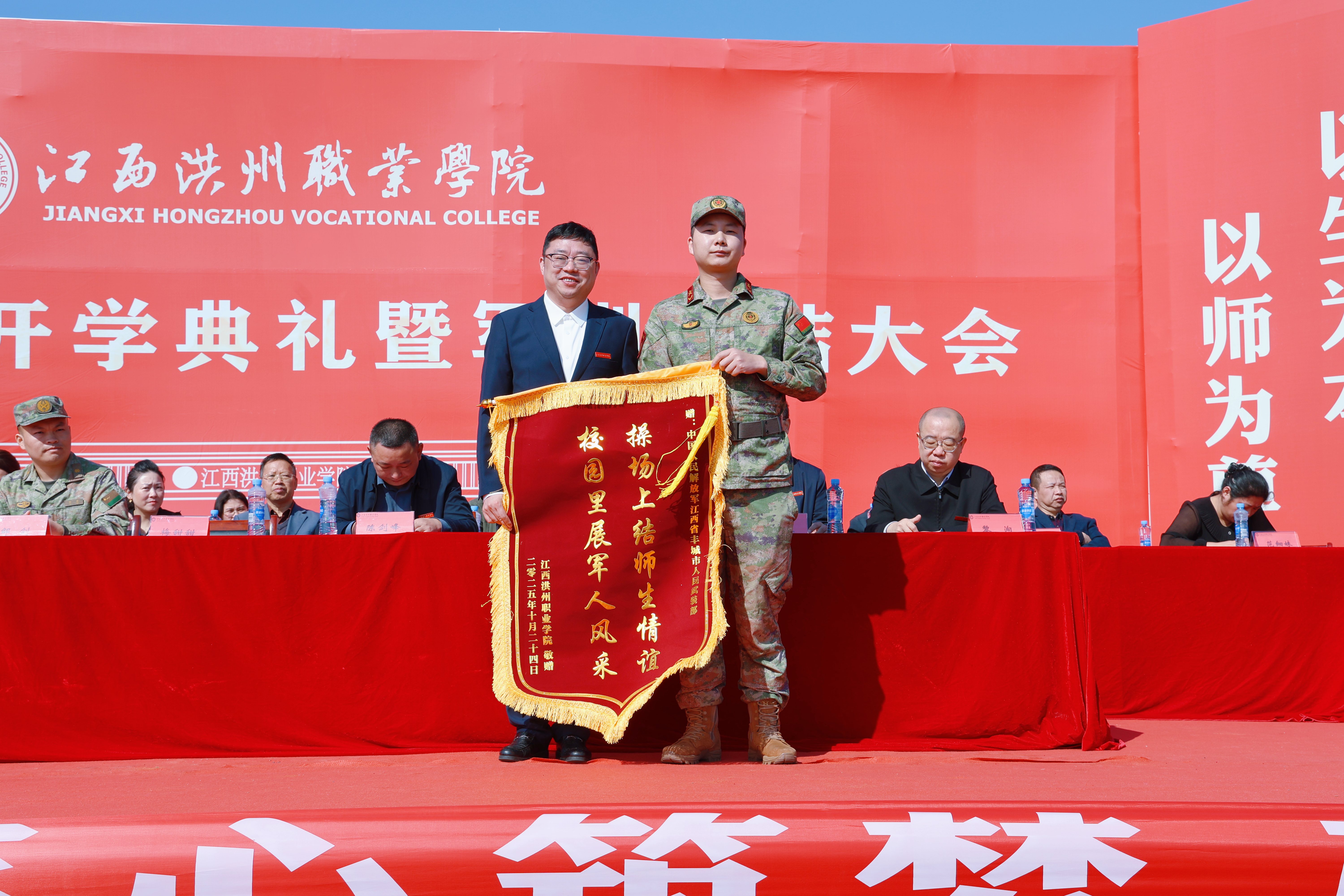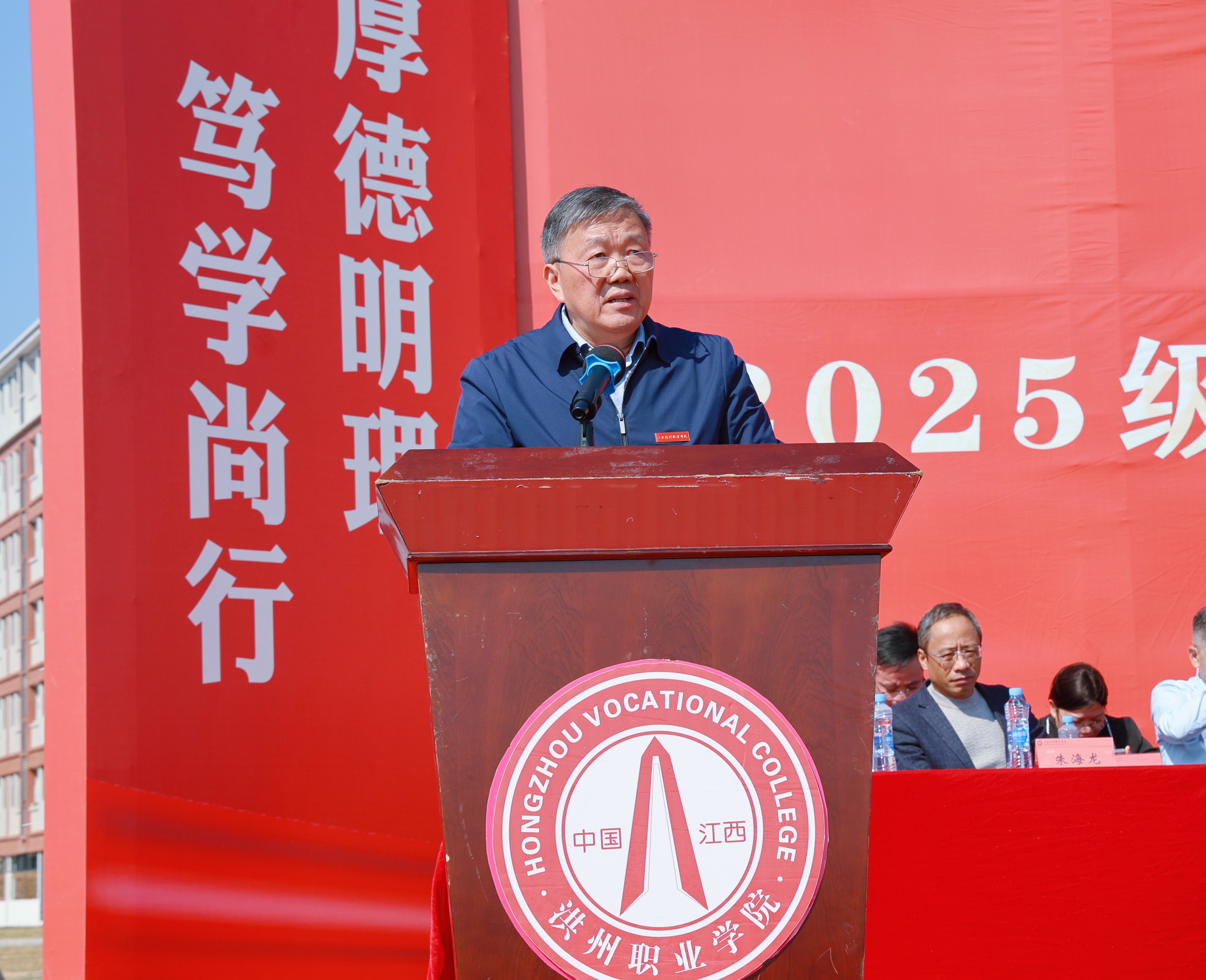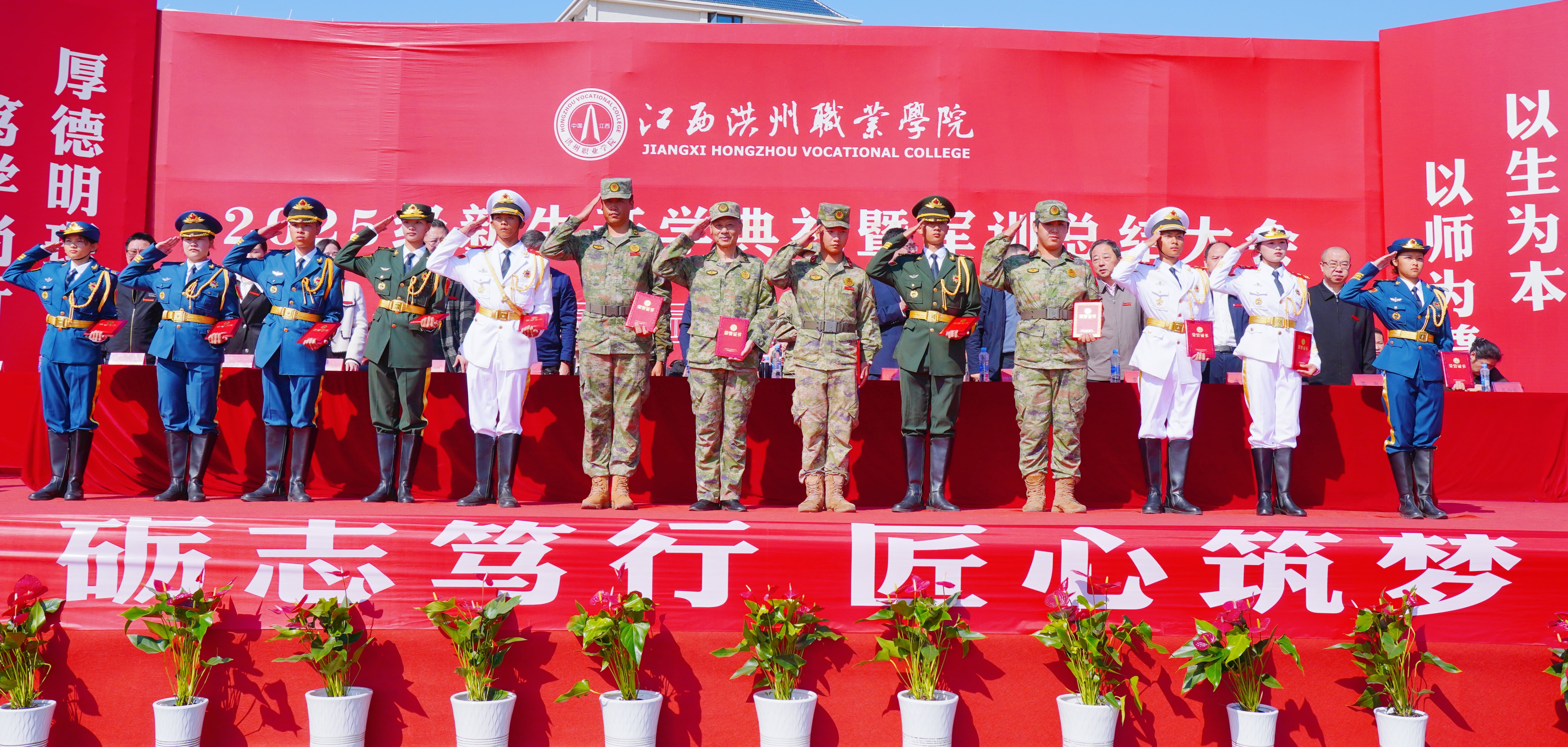 校长刘权辉发表激情洋溢的讲话,代表学校向2025级全体新生表示最热忱的欢迎!向荣获军训优秀连队、优秀教官、优秀学员荣誉称号的先进集体和个人表示热烈的祝贺!向悉心指导和支持军训工作的宜春军分区、丰城市人武部、宜春市武警支队的领导,向全体教官、服务军训工作的师生表示衷心感谢!他寄语2025级全体新生:一要立德铸魂,厚植家国情怀,做报效祖国的有为人。做到明大德、守公德、严私德,树立报国心志。二要勤学苦练,锻造技能本领,做工匠精神的传承人。做到紧跟时代步伐,学习前沿知识和技术,苦练实操,精益求精。三要守正创新,坚持求真务实,做回报社会的担当人。做到在学习中守正,在传承中突破,在创新中发展,追求极致,回报社会。