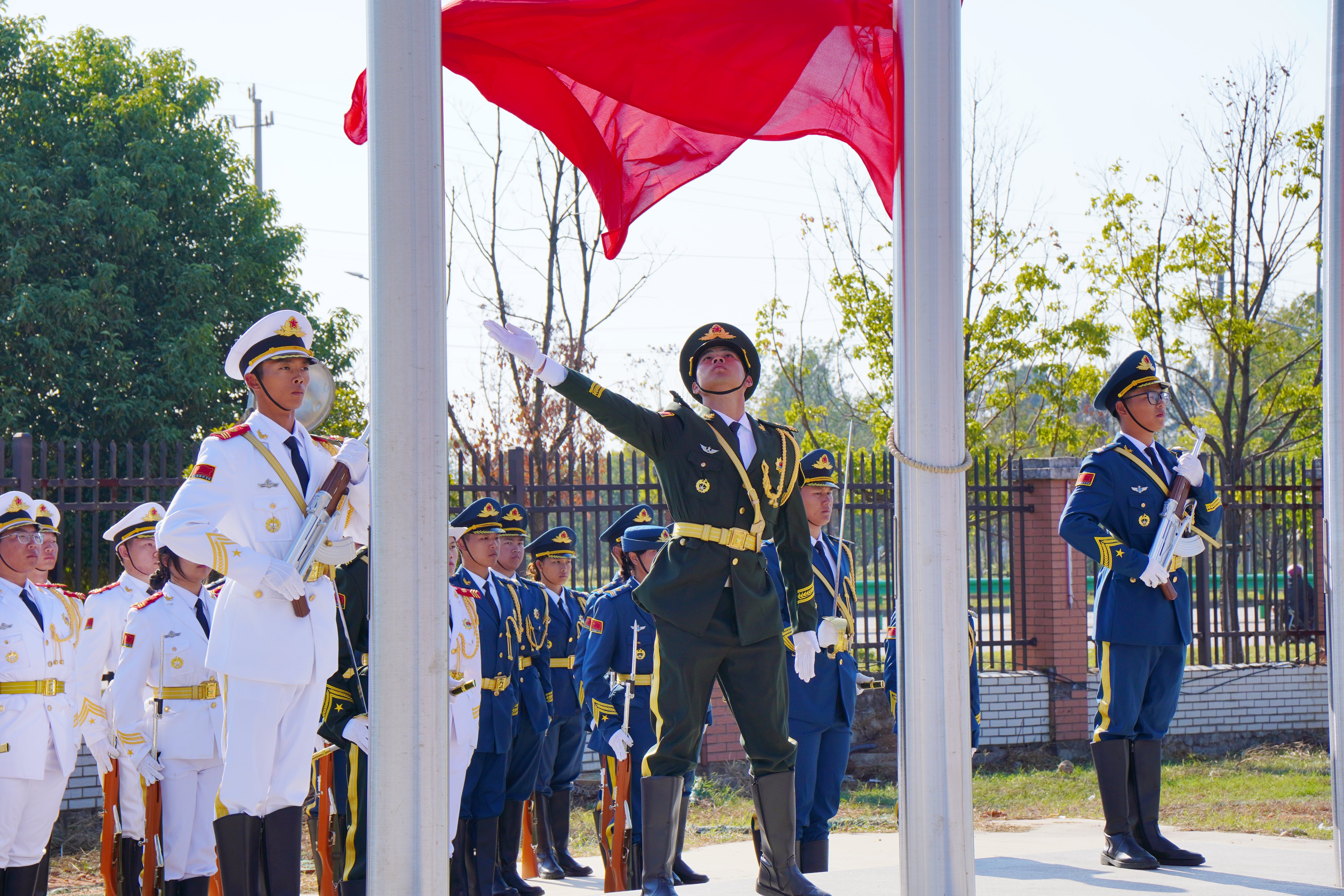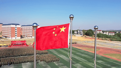 国旗飘扬、歌声嘹亮,大会在庄严的仪式中拉开序幕。全体师生肃立,面对冉冉升起的五星红旗行注目礼。