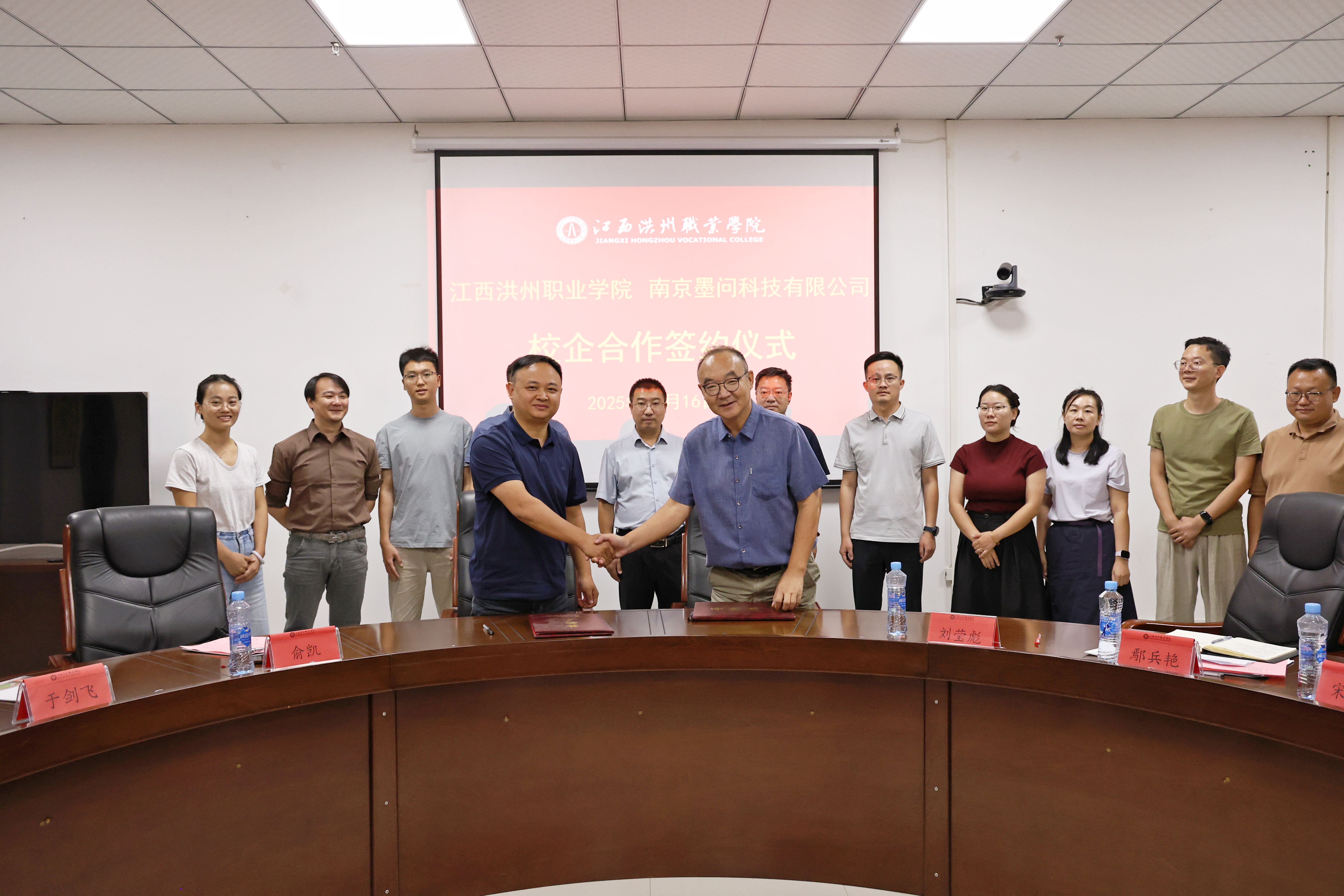 最后,在全体参会人员见证下,江西洪州职业学院与南京墨问科技有限公司正式签订校企合作协议,双方合作迈入新阶段。