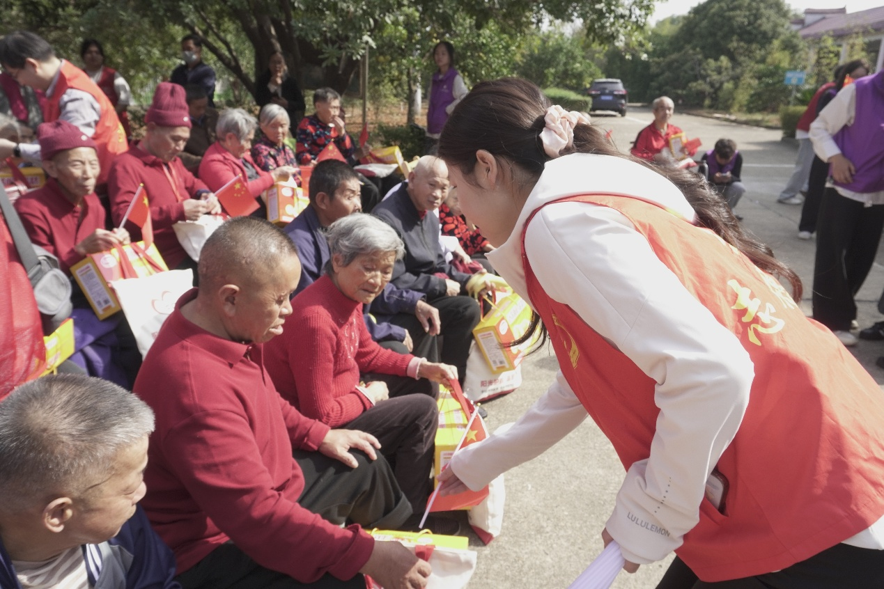 志愿者们还给老人们带来了香蕉、面包、帽子和袜子等爱心物资,物资虽然普通,却是最贴心、最实用的关怀。