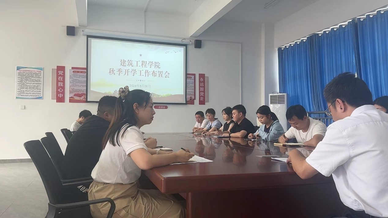 为确保新学期各项工作顺利进行,为全体师生提供一个安全、有序、和谐的教学环境。2024年8月28日下午15时,建筑工程学院在党员活动室开展了秋季开学工作布置会,院领导和全体教职工共同规划本学期的重点工作方向,并明确了各项任务的具体安排。