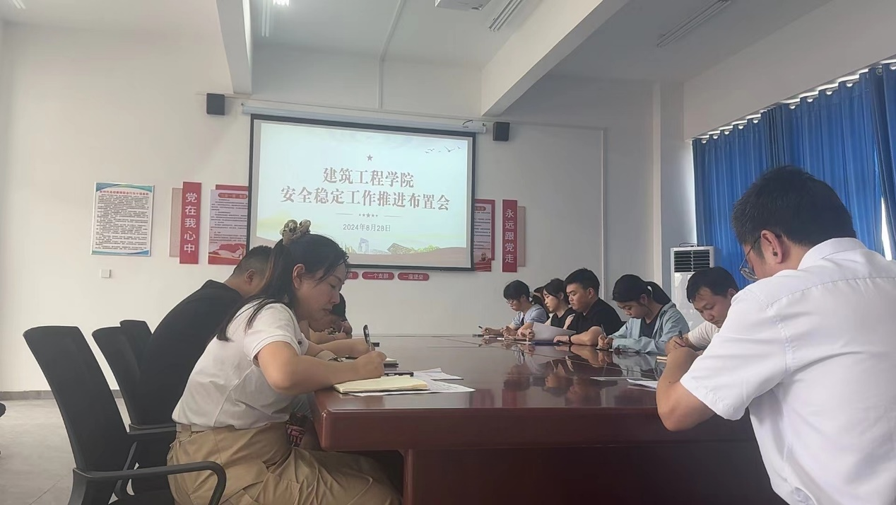 为强化风险预防措施,加强新学期校园安全稳定,2024年8月28日下午,建筑工程学院在党员活动室召开了安全稳定工作推进布置会,会议传达了学校秋季学期安全校园安全会议精神,并部署了学院秋季学期的安全工作。院长吴三胜、党支部副书记胡琴及全体教职工参加了此次会议。