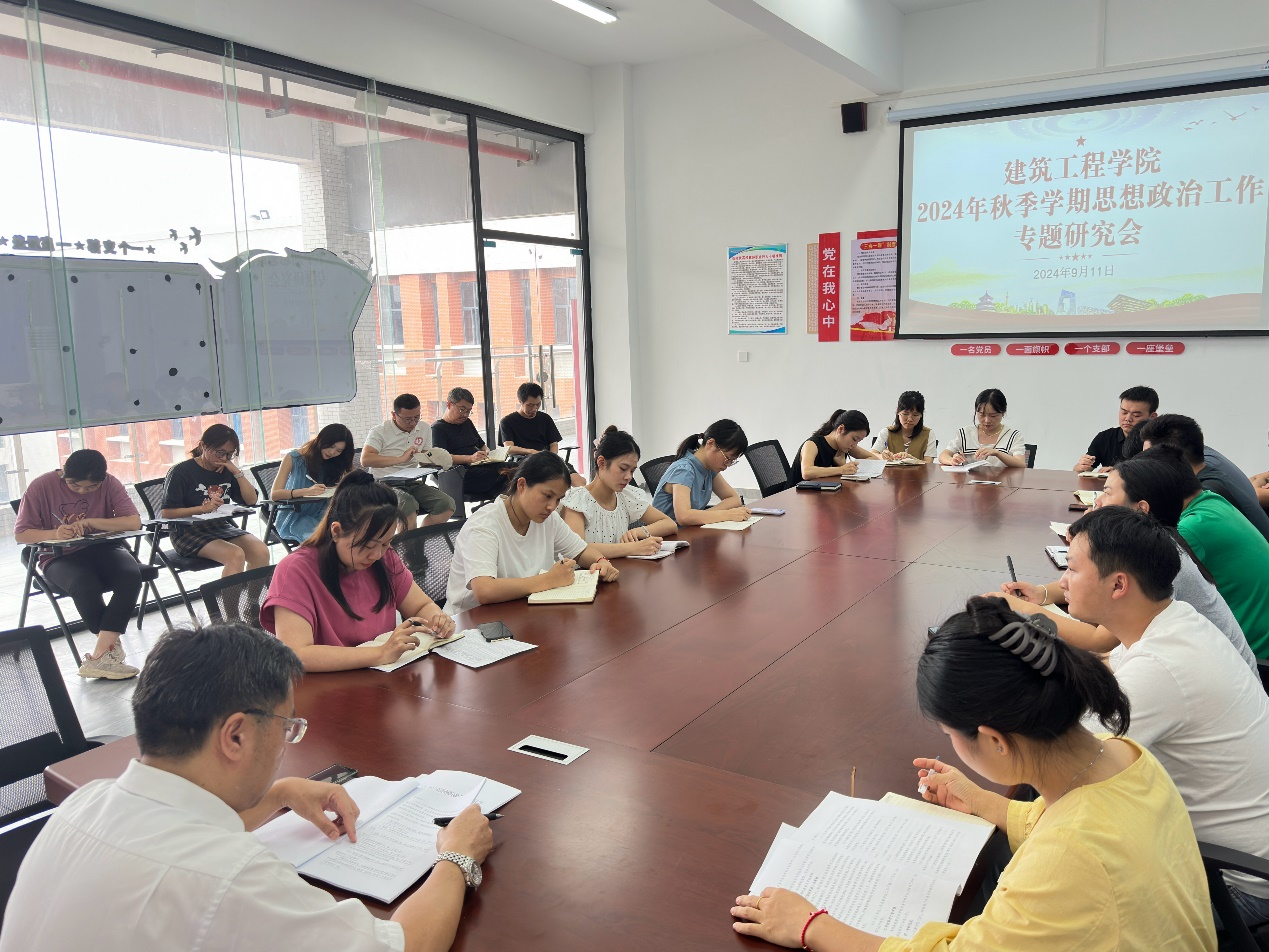2024年9月11日下午3点,建筑工程学院在党员活动室召开了思想政治工作专题研讨会。此次会议旨在深入探讨新时代背景下高校思想政治工作的新思路、新方法,进一步加强和改进学院思想政治工作,提升思想政治教育的质量和效果。会议由学院党支部副书记胡琴主持,院长吴三胜以及全体教师、辅导员参加了此次研讨会。