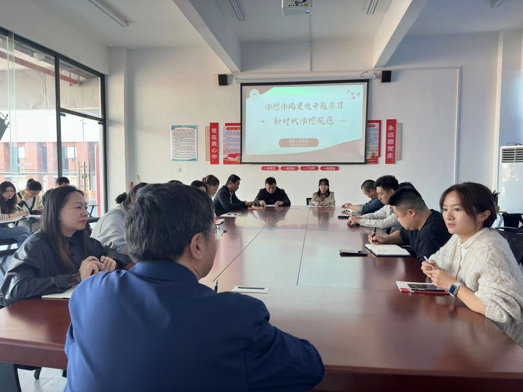 为深入学习党的二十大精神和全国教育大会精神,进一步加强师德师风建设,提升教师职业道德素养,2024年11月13日星期三下午,建筑工程学院在党员活动室召开了师德师风学习会。本次会议由建筑工程学院副院长吴三胜主持,全体教师参加了此次学习。