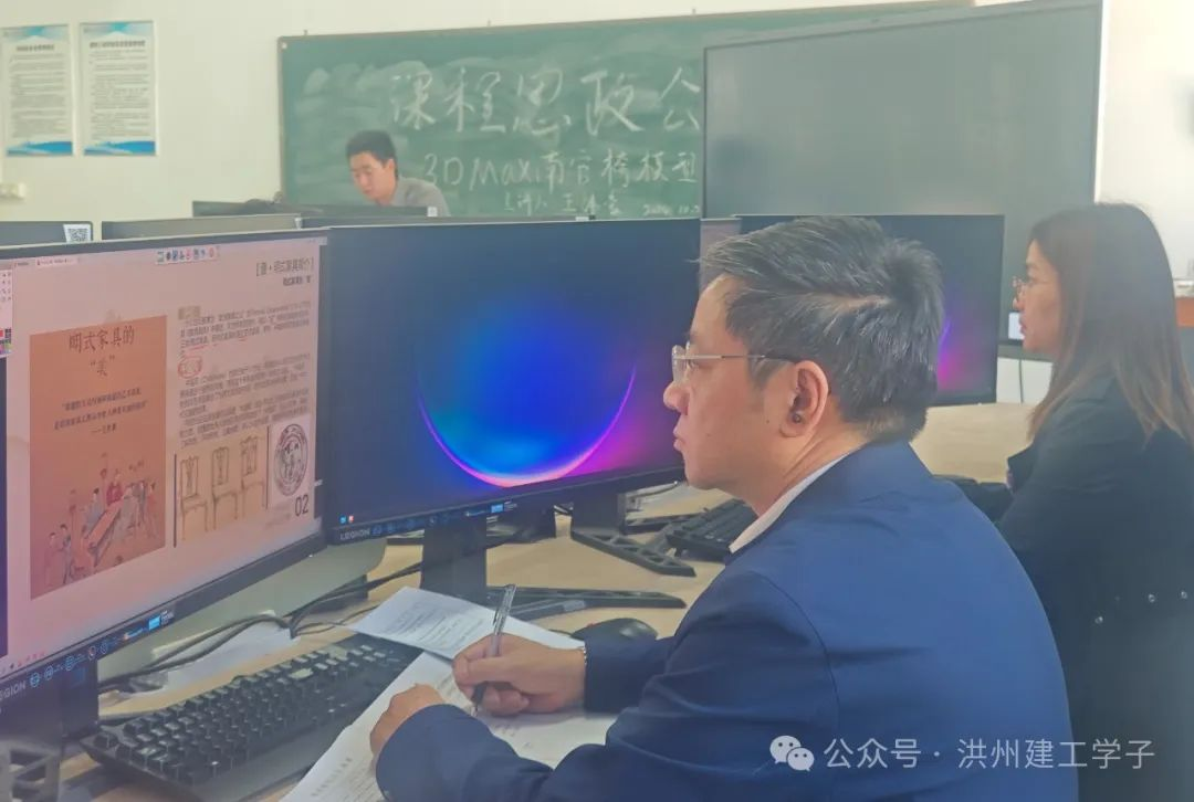 为深入贯彻全国高校思想政治工作会议精神,切实落实“立德树人”的根本任务,通过党建引领积极探索“课程思政”的有效途径,2024年10月23日下午,建筑工程学院在实训楼A309开展了课程思政公开课教学活动。本次公开课由室内设计专业专职教师王纬豪主讲,主题为《3DMAX南官椅模型制作》。建筑工程学院联络校领导金红艳及学院全体教师参加公开教学听课,共同探索将党的先进理念融入专业教学中,培养德才兼备的新时代建设者。