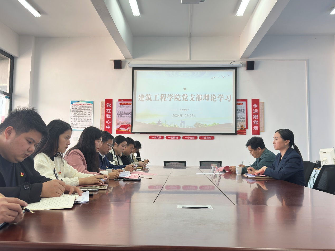 10月23日,建筑工程学院党支部在党员活动室召开了党支部理论学习会议。会议有纪委书记熊巧玲、商学院党支部书记杨旭华列席旁听,会议由学院党支部副书记胡琴主持,建筑工程学院全体读书班成员参与此次学习。