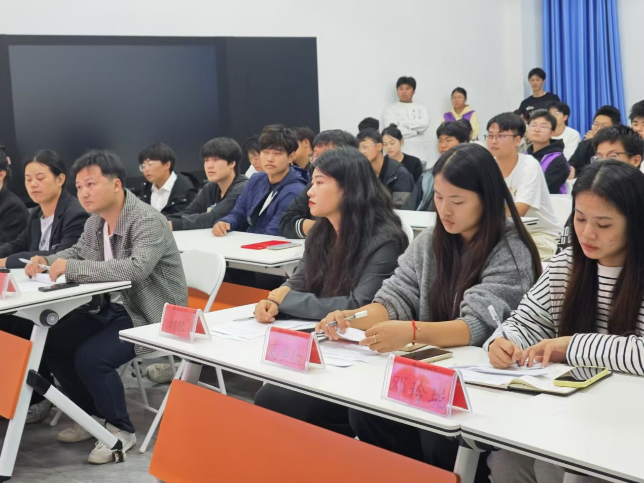 为贯彻落实共青团改革的有关要求, 夯实学院共⻘团工作基础,吸引广大青年积极参与团课教育,提高共青团为党育人成效。2024年11月4日星期一,建筑工程学院在实训楼C509举办了第二届微团课大赛。此次大赛有来自建筑工程学院7个班级的十名团员青年选手,评委老师分别是:党支部副书记胡琴、学工办副主任洪为、辅导员夏美珍、辅导员徐小燕、辅导员邓玲珑。