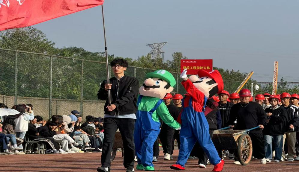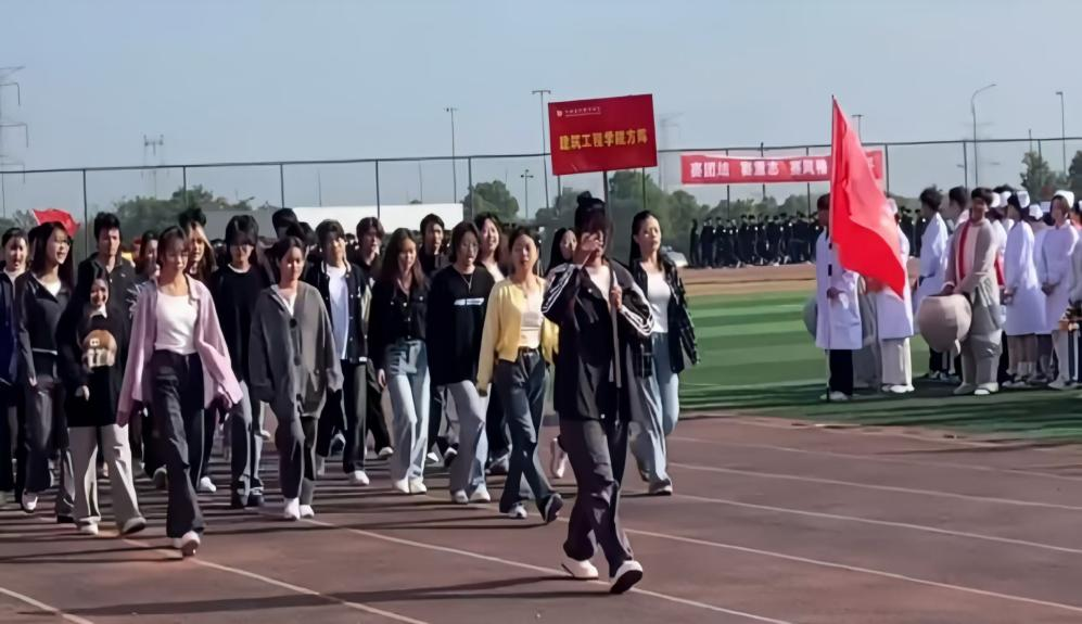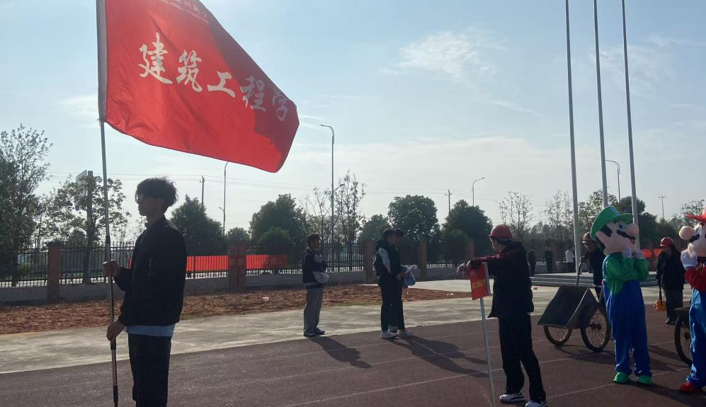 操场上,彩旗飘扬,人声鼎沸。2024级建筑工程学院运动员们个个精神抖擞,摩拳擦掌,准备在赛场上一展身手。