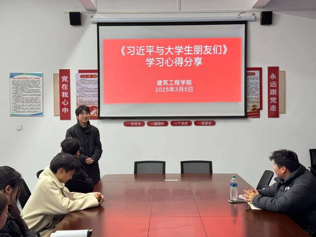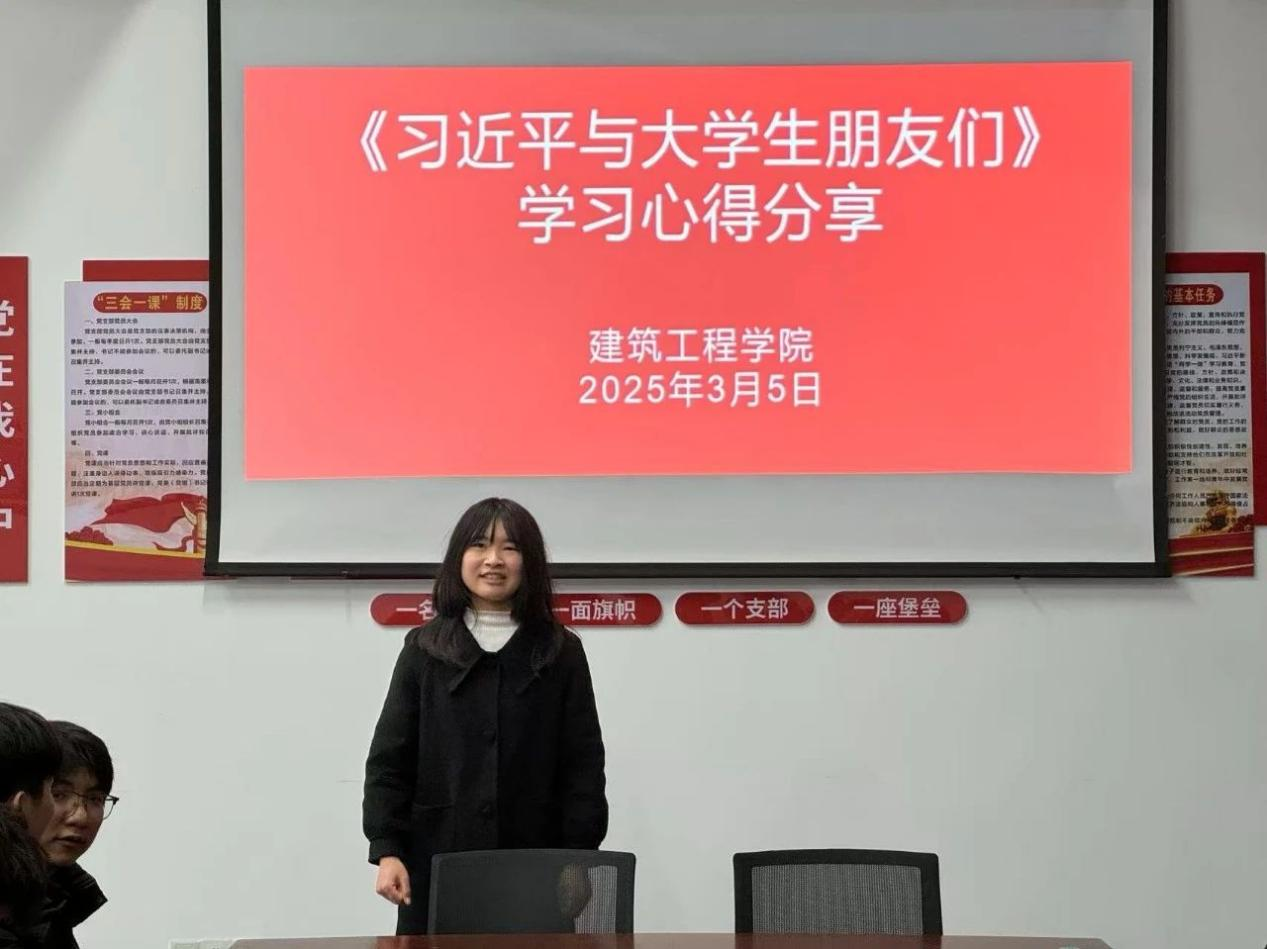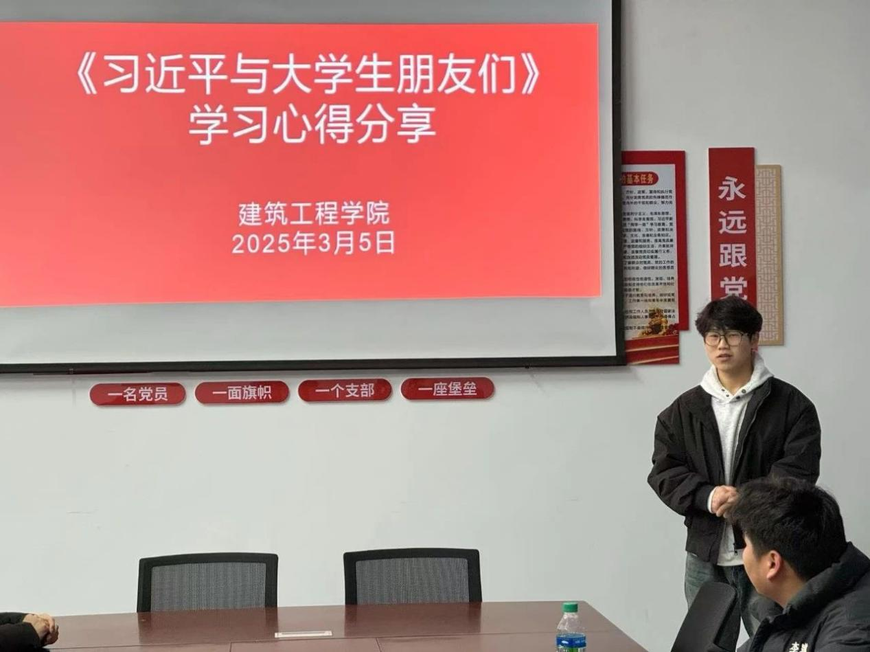 “青春共读,坚定理想信念”2025年3月5日建筑工程学院在实训楼A-503党员活动室和各班级团支书围绕《习近平与大学生朋友们》举行了读书分享会,本次读书分享会旨在通过深入探讨书中的思想和理念,帮助大学生们更加理解时代背景、人生发展与自我提升的关系。我们希望通过此活动,激发同学们对未来的思考,帮助他们更好地把握自我成长与学业发展的机会。以下是各团支书在此次分享会中分别围绕《习近平与大学生朋友们》第一、二卷中访谈故事,结合自生经历、学习情况分享读书感悟。