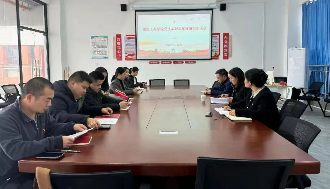 建筑工程学院党支部于2025年3月12日在党员活动室召开2024年度组织生活会,并进行民主评议党员,党支部副书记胡琴主持会议,学校财务总监金红艳、建筑工程学院副院长吴三胜出席会议,全体党员参会。