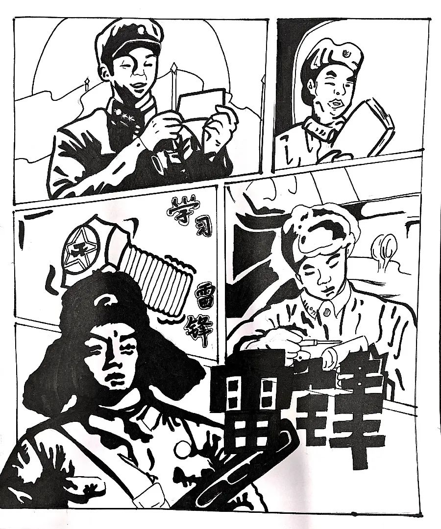 在这个雷锋月,同学们用漫画生动呈现出雷锋同志的光辉形象,深刻诠释了他的崇高精神。这些作品,既是对雷锋精神的深情致敬,也是对新时代青年传承、弘扬雷锋精神的有力鼓舞与鞭策。希望我们都能从雷锋同志的事迹里汲取奋进力量,把雷锋精神真正融入内心,落实在日常行动中,为构建和谐社会添砖加瓦,贡献自己的一份力量。